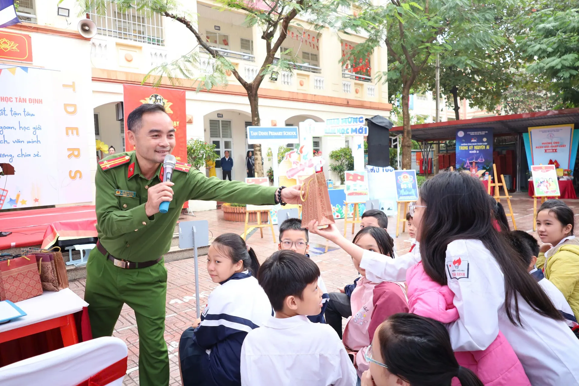 Ngoài ra, Trung tá Lê Trọng Ngọc, cán bộ Công an phường Tương Mai đã trực tiếp tuyên truyền, hướng dẫn học sinh những kiến thức cơ bản về sử dụng mạng Internet an toàn, hiệu quả và quyền trẻ em trong môi trường mạng. Những nội dung như nhận diện nguy cơ, phòng tránh thông tin xấu độc, ứng xử văn minh trên không gian số được truyền tải sinh động, dễ hiểu, giúp các em hình thành thói quen sử dụng công nghệ có trách nhiệm.