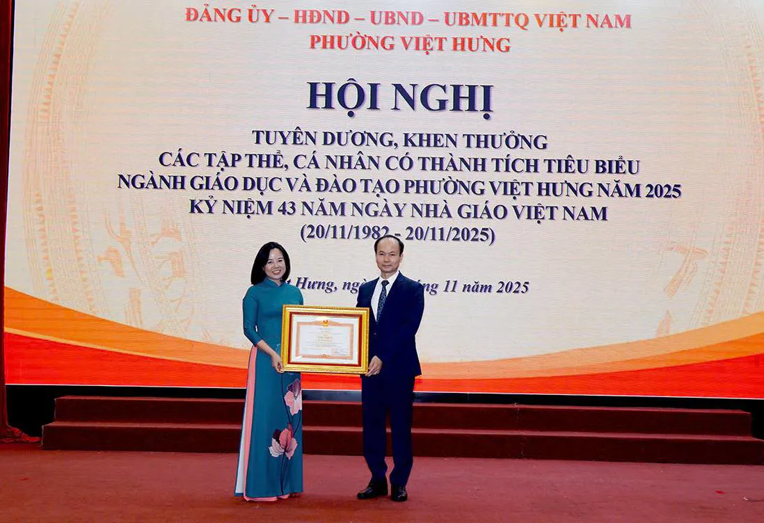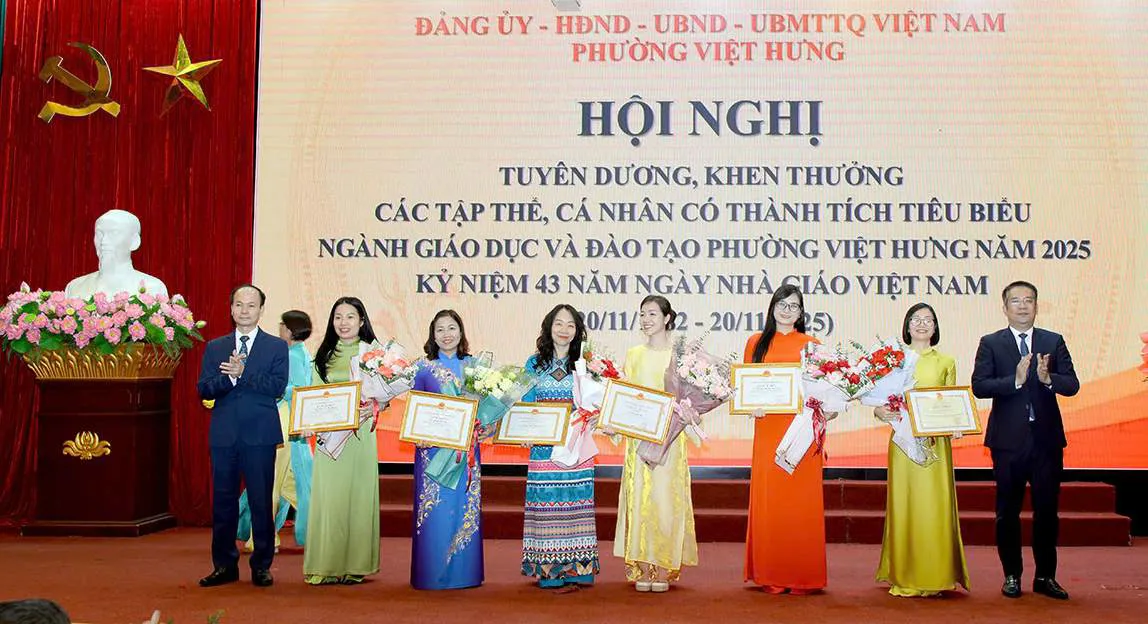 Kỷ niệm 43 năm Ngày Nhà giáo Việt Nam (20/11/1982 – 20/11/2025), phường Việt Hưng đã tuyên dương, khen thưởng các tập thể, cá nhân có thành tích xuất sắc trong năm học 2024 – 2025. Nhiều tập thể, cá nhân đã được nhận các phần thưởng cao quý của Đảng, Nhà nước và các cấp, ngành.