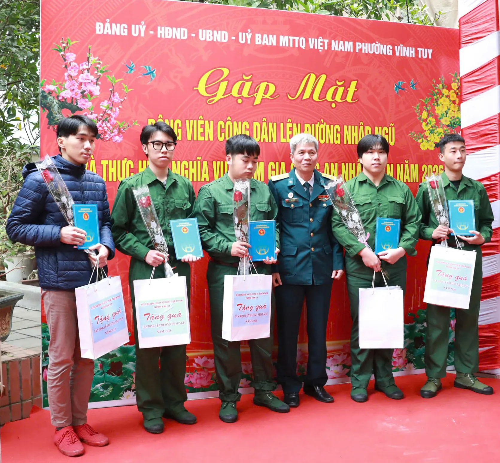 Hôm nay, 11/2, Đảng ủy - HĐND - UBND - UB MTTQ Việt Nam phường Vĩnh Tuy trang trọng tổ chức gặp mặt, động viên công dân lên đường nhập ngũ và thực hiện nghĩa vụ tham gia Công an Nhân dân năm 2026.