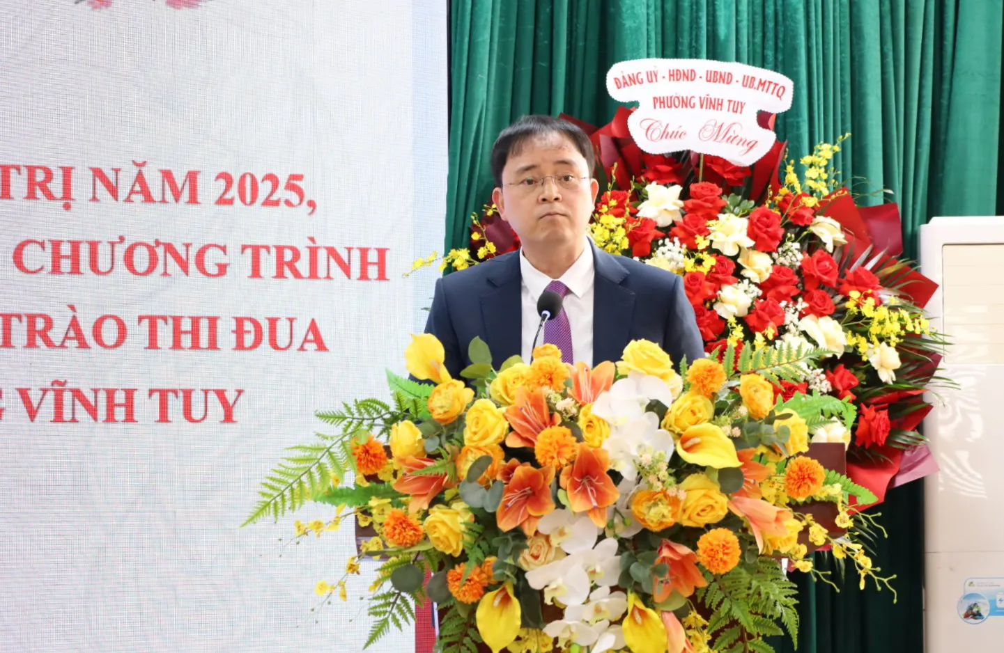 Thay mặt Đảng ủy, HĐND, UBND, UB MTTQ phường phát biểu chỉ đạo tại Hội nghị, Bí thư Đảng ủy, Chủ tịch HĐND phường Vĩnh Tuy Nguyễn Quang Trung nhấn mạnh, năm 2025 phường được thành lập theo mô hình chính quyền địa phương 2 cấp, có khối lượng công việc TP phân cấp tăng, nhiều việc mới, việc khó, nhất là khó khăn về cơ sở vật chất, trụ sở làm việc. Dù vậy, với quyết tâm chính trị cao, bám sát nhiệm vụ chính trị trọng tâm của TP và thực tiễn tại phường, Ban Chấp hành Đảng bộ phường đã lãnh đạo cả hệ thống chính trị cùng Nhân dân quyết tâm khắc phục, vượt qua thách thức, thực hiện thắng lợi các nhiệm vụ chính trị trên địa bàn. Cả hệ thống chính trị hoạt động ổn định, nền nếp, hiệu quả, đạt được những kết quả nổi bật.