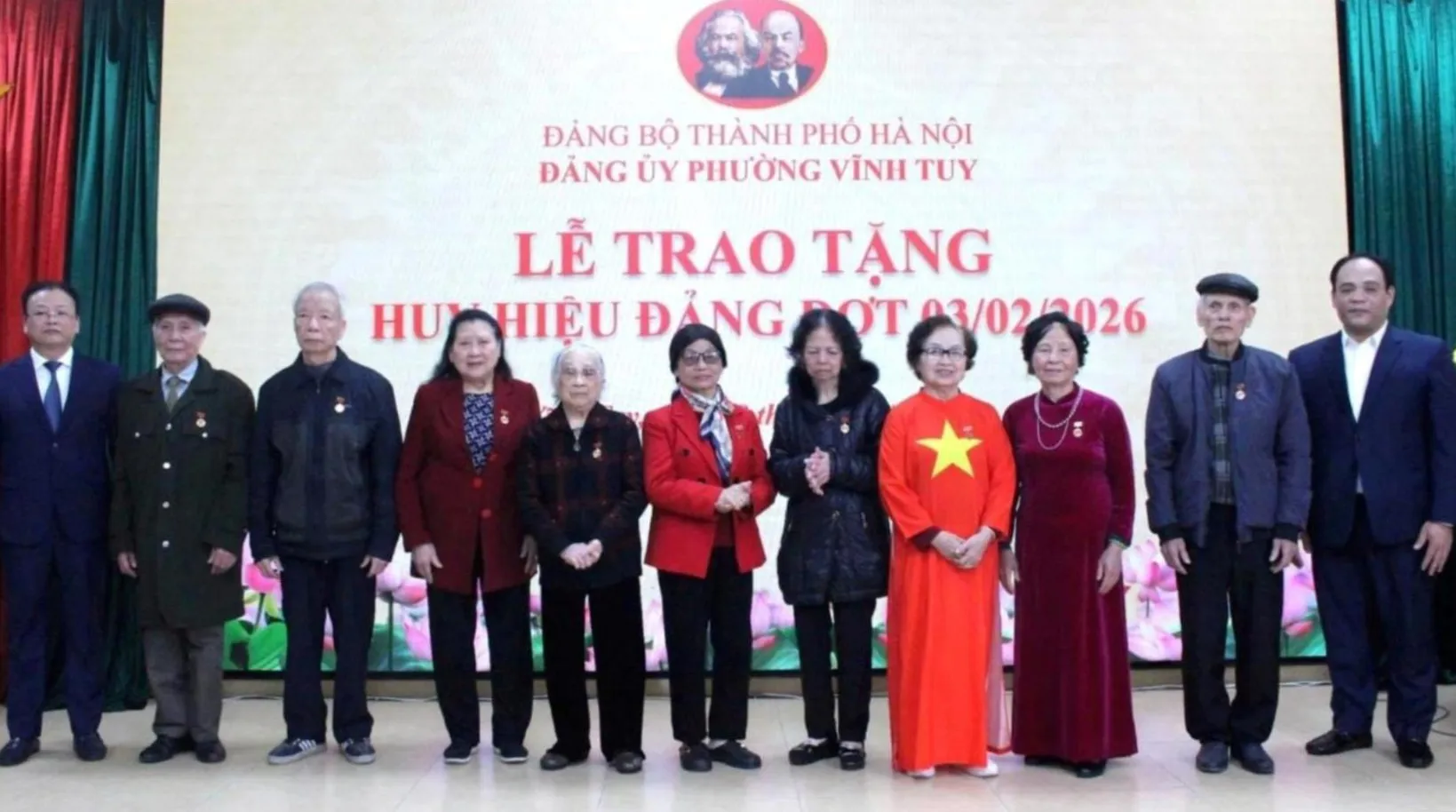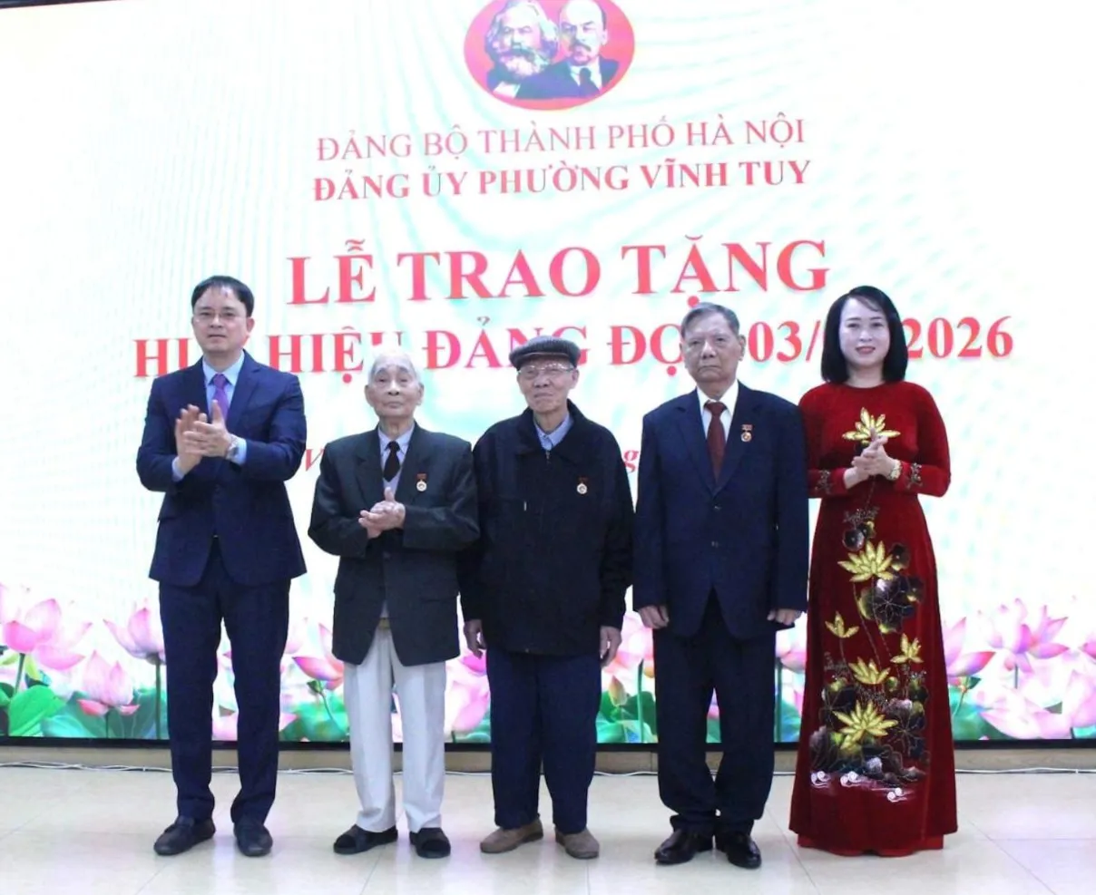 Nhân kỷ niệm 96 năm Ngày thành lập Đảng Cộng sản Việt Nam, chiều nay, 29/1, Đảng ủy phường Vĩnh Tuy trang trọng tổ chức Lễ trao tặng Huy hiệu Đảng đợt 3/2/2026.