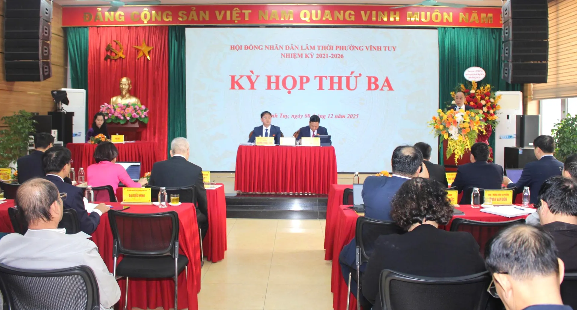 Quang cảnh Kỳ họp thứ Ba HĐND lâm thời phường Vĩnh Tuy, nhiệm kỳ 2021-2026