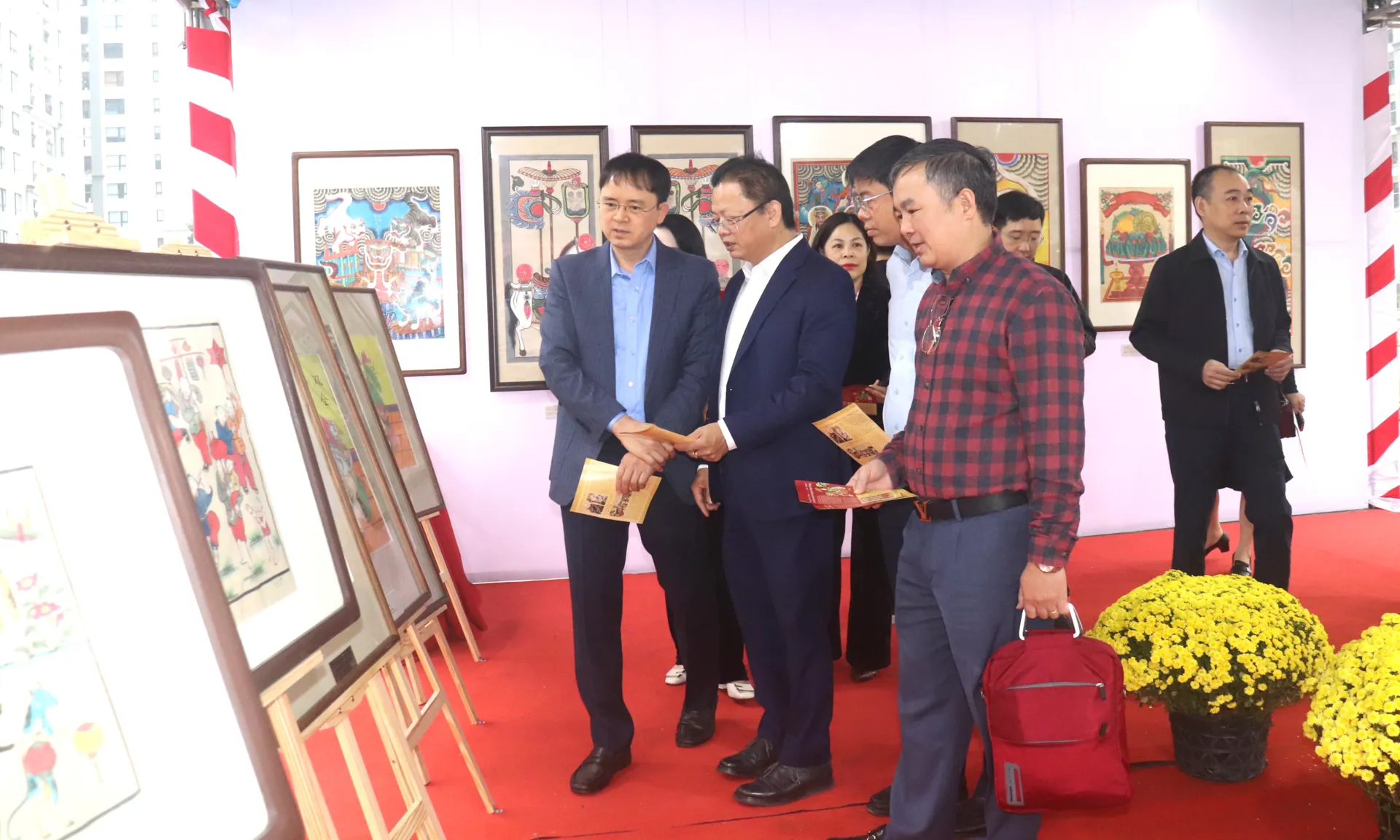 Trong khuôn khổ Hội chợ Xuân Bính Ngọ 2026, các đại biểu và Nhân dân tham quan Triển lãm “Tranh dân gian Hàng Trống” của nhà sưu tập Nguyễn Quang Trung - Bí thư Đảng ủy phường Vĩnh Tuy