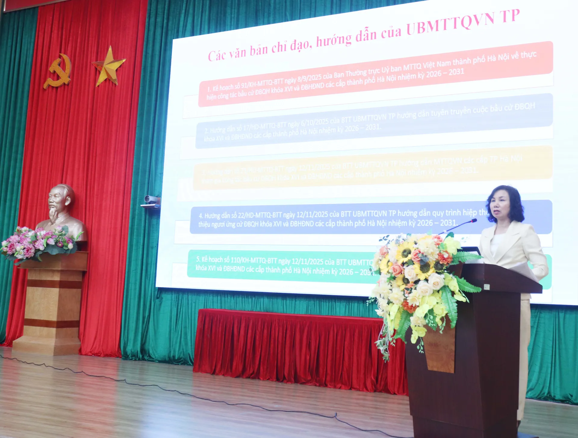 Tại hội nghị, Chủ tịch Ủy ban MTTQ phường Xuân Đỉnh Nguyễn Thu Hương đã hướng dẫn một số nội dung công tác bầu cử đại biểu Quốc hội khoá XVI và HĐND các cấp; triển khai các văn bản chỉ đạo, hướng dẫn của Ủy ban MTTQ các cấp; hướng dẫn quy trình hiệp thương lựa chọn, giới thiệu người ứng cử đại biểu Quốc hội, HĐND; hướng dẫn công tác kiểm tra, giám sát công tác bầu cử.
