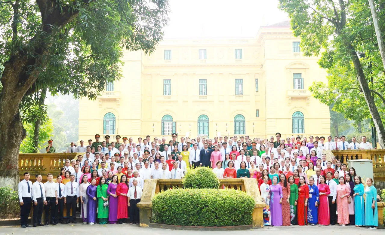 Đoàn đại biểu Đảng bộ, chính quyền và Nhân dân phường Xuân Đỉnh thăm quan Khu di tích Phủ Chủ tịch.