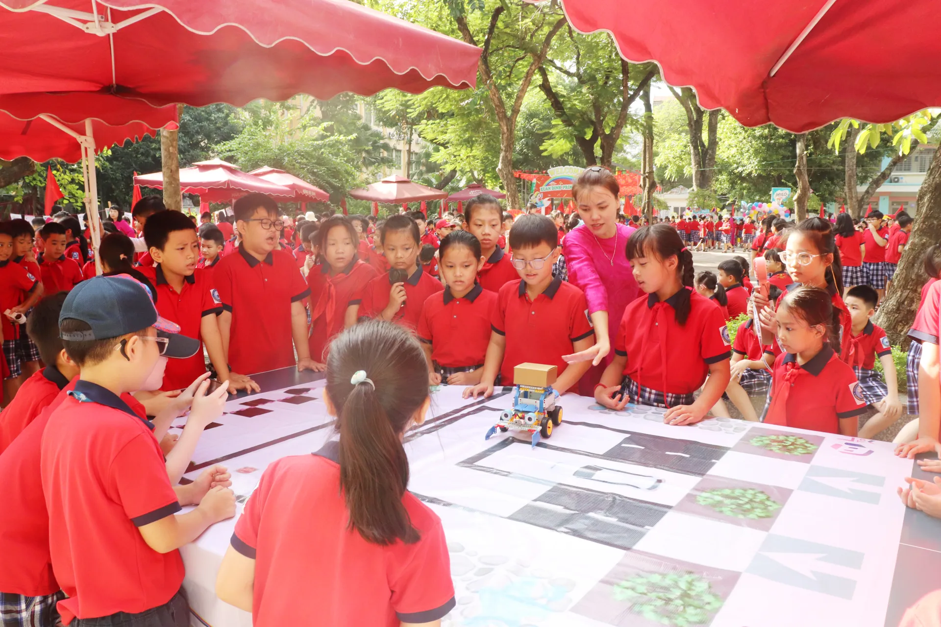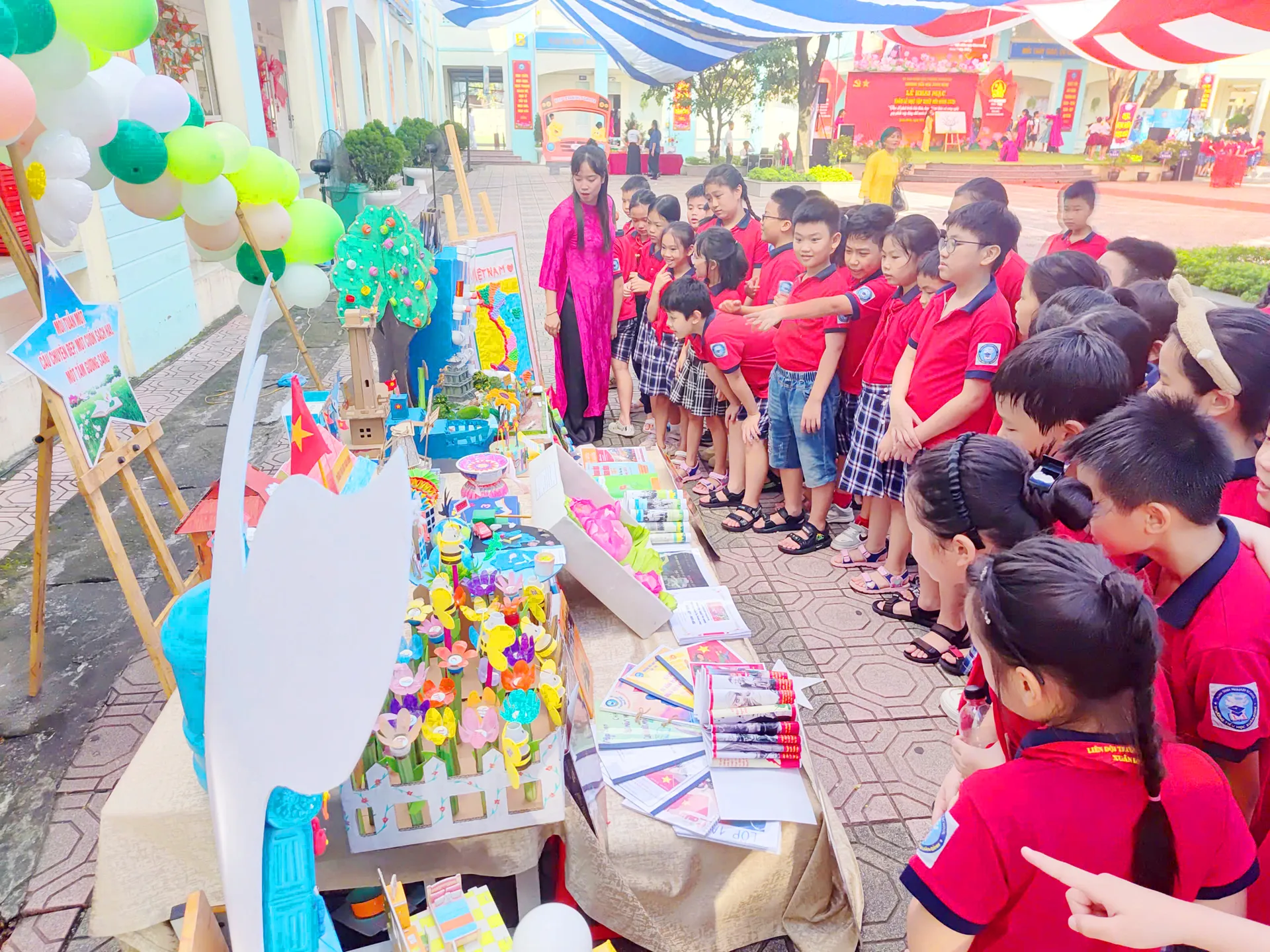 Học sinh Trường Tiểu học Xuân Đỉnh thăm quan gian hàng tại Tuần lễ hưởng ứng học tập suốt đời năm 2025.