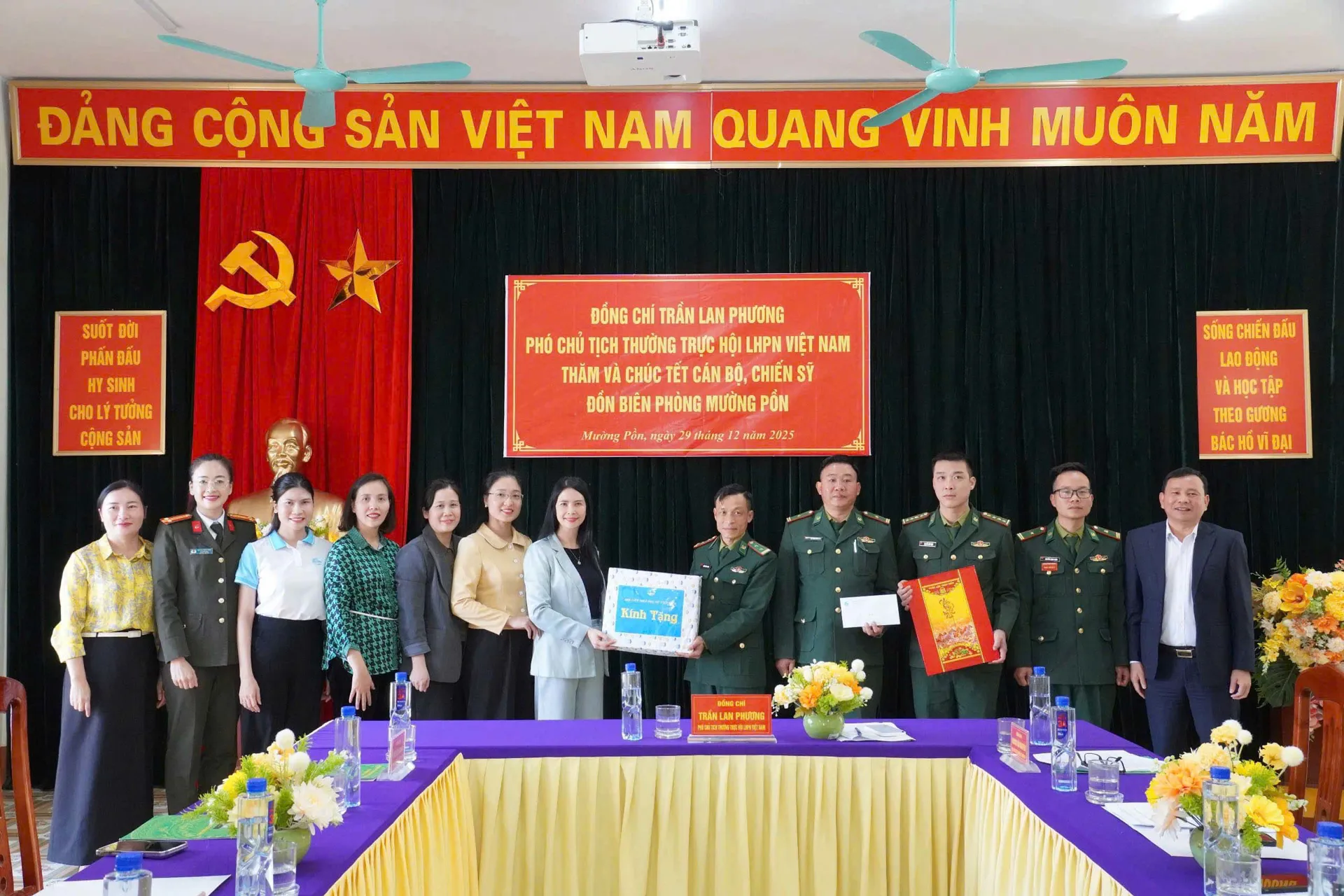 Phó Chủ tịch Thường trực T.Ư Hội LHPN Việt Nam Trần Lan Phương cùng đoàn công tác thăm, chúc Tết cán bộ, chiến sĩ Đồn Biên phòng Mường Pồn, tỉnh Điện Biên.