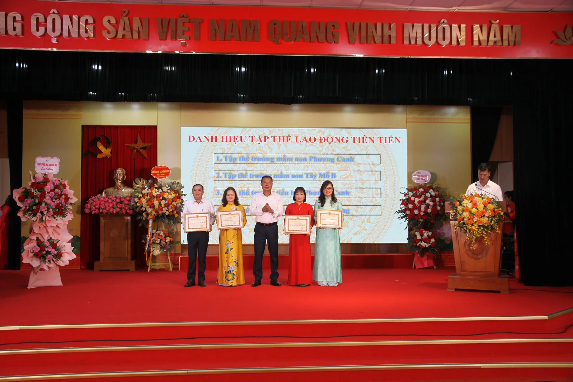 Lãnh đạo phường Xuân Phương trao thưởng cho các tập thể và cá nhân đạt thành tích cao trong năm học 2024-2025.