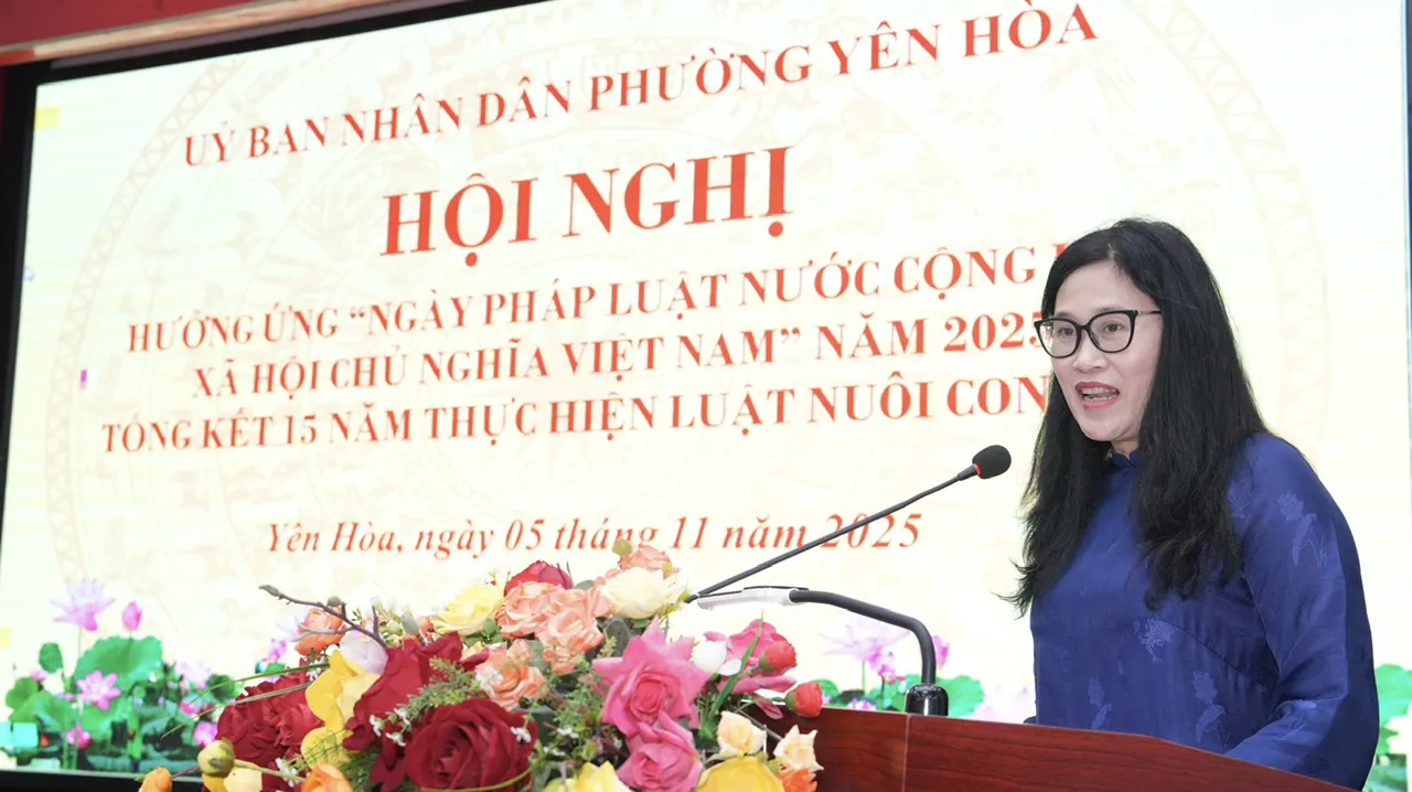 Phát biểu tại hội nghị, Chủ tịch UBND phường Yên Hòa Trịnh Thị Dung nhấn mạnh: “Ngày Pháp luật Việt Nam không chỉ là hoạt động mang tính biểu tượng mà là dịp nhắc nhở mỗi cán bộ, đảng viên và người dân phải coi việc tuân thủ pháp luật là nền tảng của kỷ cương, là thước đo công bằng, là công cụ bảo vệ quyền và lợi ích hợp pháp của mọi công dân”.