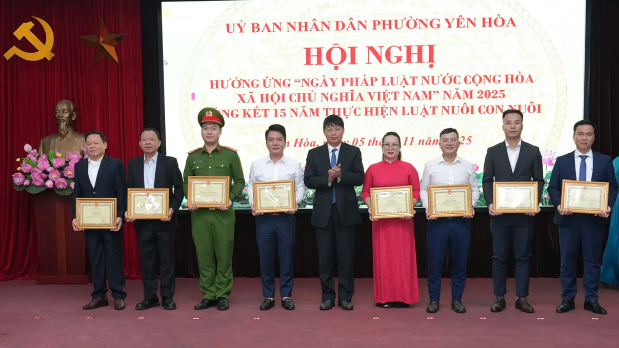 Nhân dịp này, UBND phường Yên Hòa đã biểu dương, khen thưởng 10 tập thể và 24 cá nhân có thành tích xuất sắc trong thực hiện Luật Nuôi con nuôi và phổ biến, giáo dục pháp luật năm 2025.