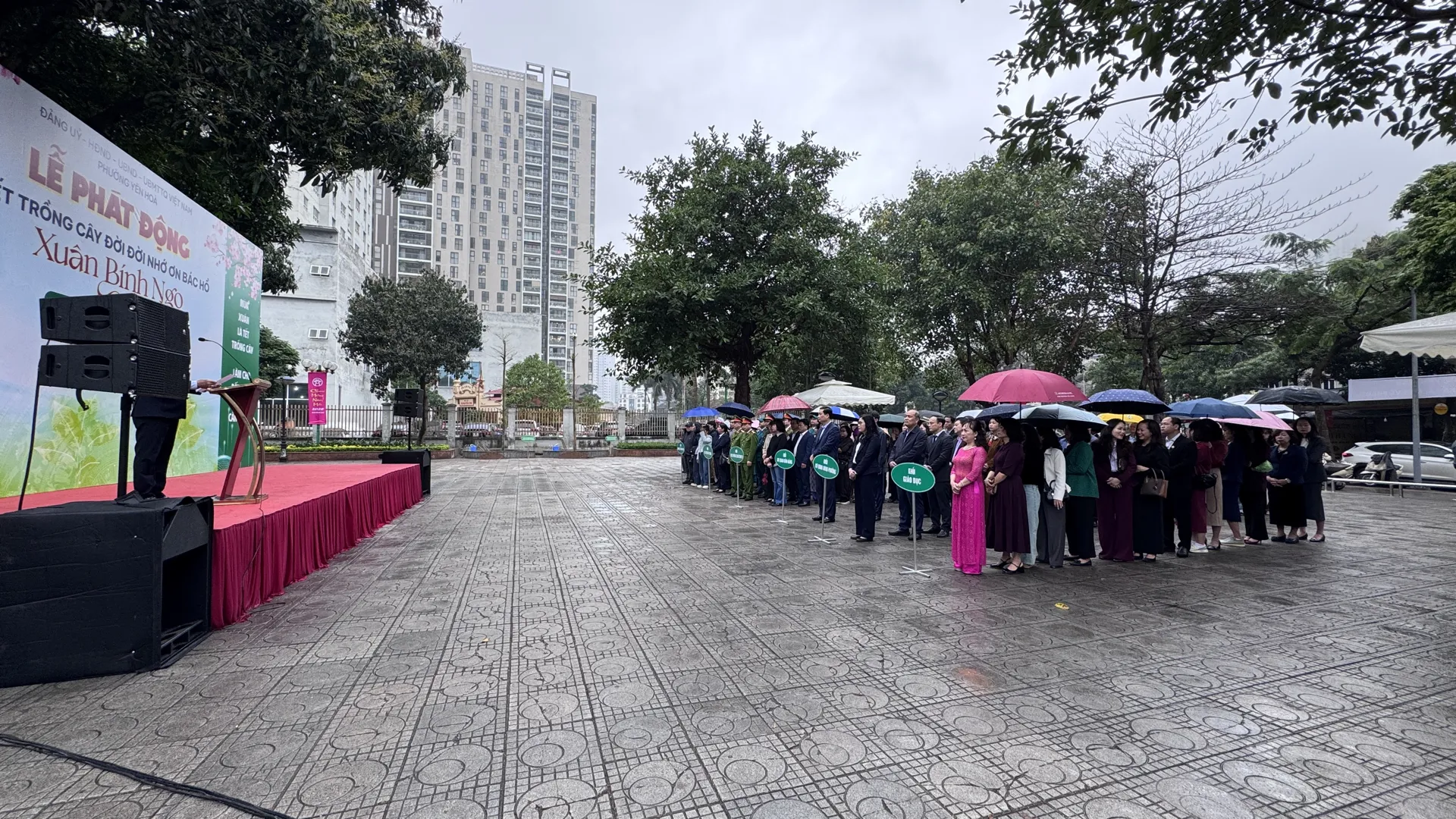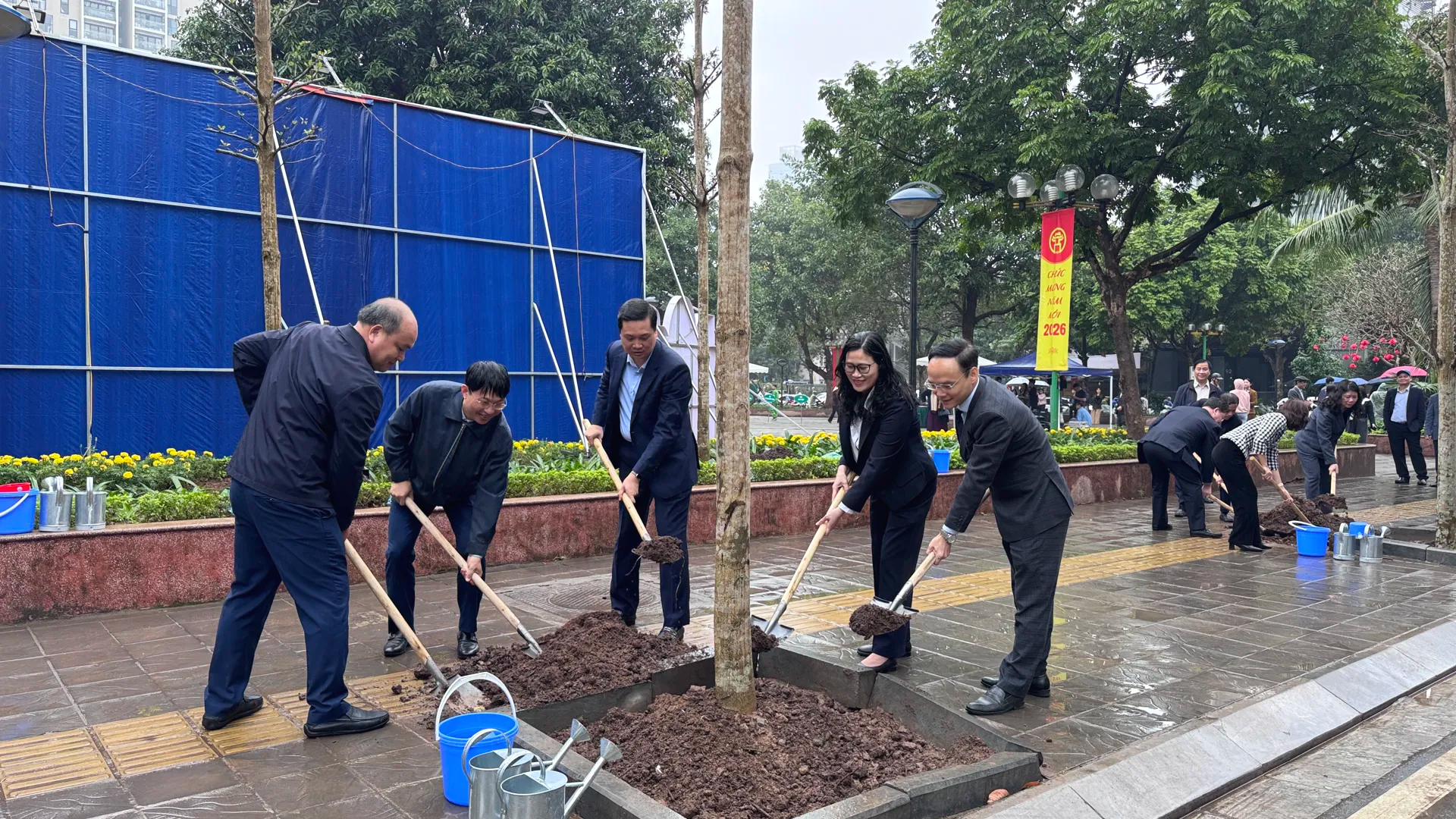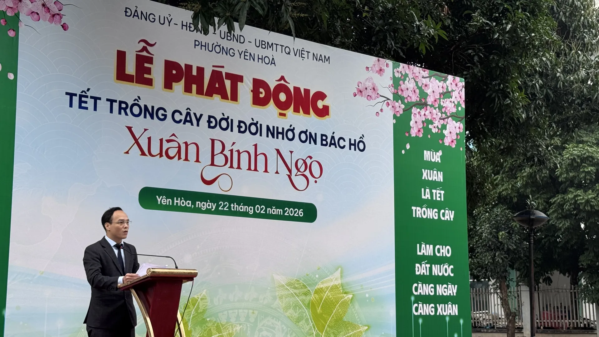 Lãnh đạo phường Yên Hoà thực hiện nghi thức phát động Tết trông cây năm 2026.