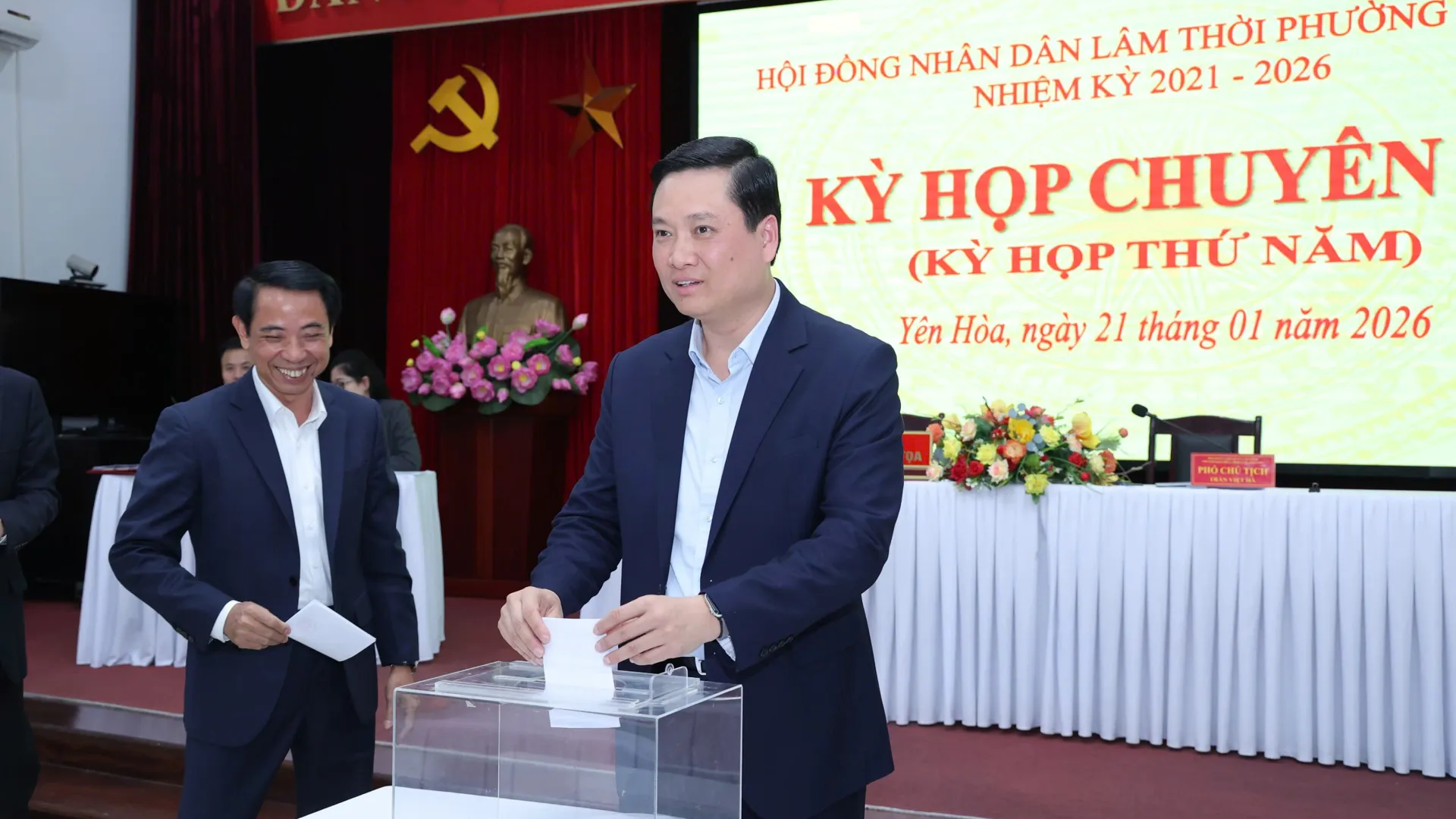 Trong khuôn khổ kỳ họp, HĐND phường Yên Hòa đã thực hiện quy trình kiện toàn các chức danh chủ chốt. Với sự tín nhiệm và thống nhất cao, ông Lê Xuân Thứ - Ủy viên Ban Thường vụ Đảng ủy, Trưởng ban Xây dựng Đảng, đại biểu HĐND phường nhiệm kỳ 2021 – 2026, đã được bầu giữ chức Phó Chủ tịch HĐND phường. Đồng thời, kỳ họp cũng bầu bổ sung Uỷ viên UBND phường đối với ông Lại Quốc Hải - Chỉ huy trưởng Ban Chỉ huy Quân sự phường Yên Hòa.