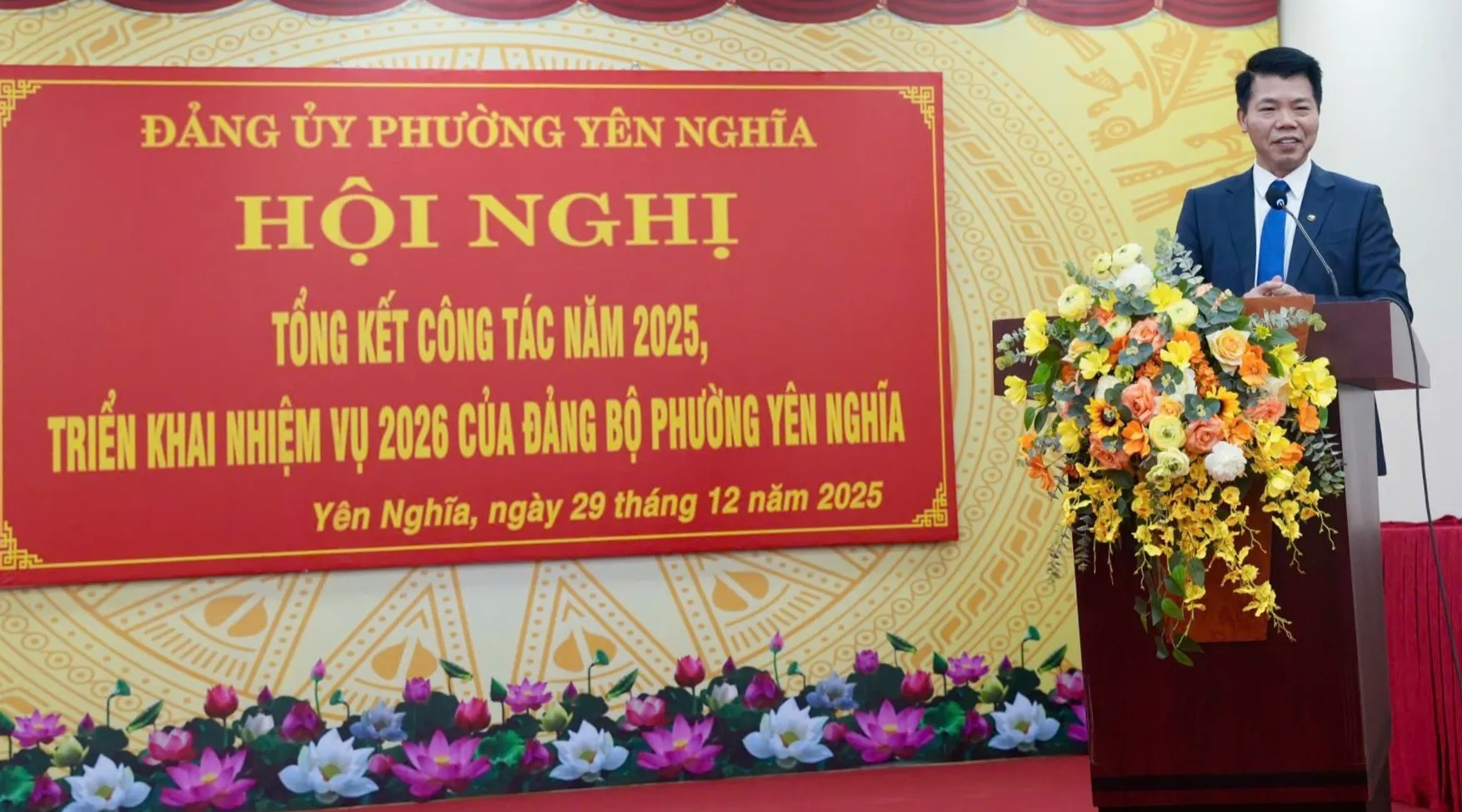 Phát biểu tại hội nghị, Bí thư Đảng ủy, Chủ tịch HĐND phường Yên Nghĩa Nguyễn Nguyên Quân nhấn mạnh: “Công tác thi đua, khen thưởng phải thực sự trở thành động lực thúc đẩy cán bộ, đảng viên và Nhân dân nỗ lực, sáng tạo trong thực hiện nhiệm vụ. Việc khen thưởng cần kịp thời, công khai, minh bạch, gắn chặt với kết quả thực chất, lấy sự hài lòng của Nhân dân làm thước đo hiệu quả.” Bí thư Đảng ủy phường Yên Nghĩa khẳng định, những kết quả đạt được trong năm 2025 là nền tảng quan trọng để phường Yên Nghĩa tiếp tục bứt phá trong năm 2026.