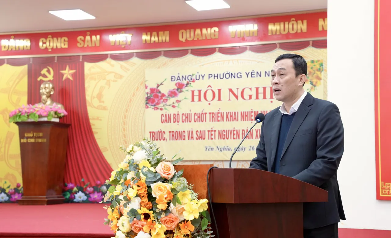 Phát biểu kết luận hội nghị, Bí thư Đảng ủy, Chủ tịch HĐND phường Yên Nghĩa Nguyễn Nguyên Quân nhấn mạnh: “Năm 2026 có ý nghĩa đặc biệt quan trọng, nhiệm vụ chính trị đặt ra rất nặng nề, nhất là trong quý I. Vì vậy, các cấp ủy, tổ chức đảng, cơ quan, đơn vị cần tập trung lãnh đạo, chỉ đạo quyết liệt, đồng bộ ngay từ đầu năm”.