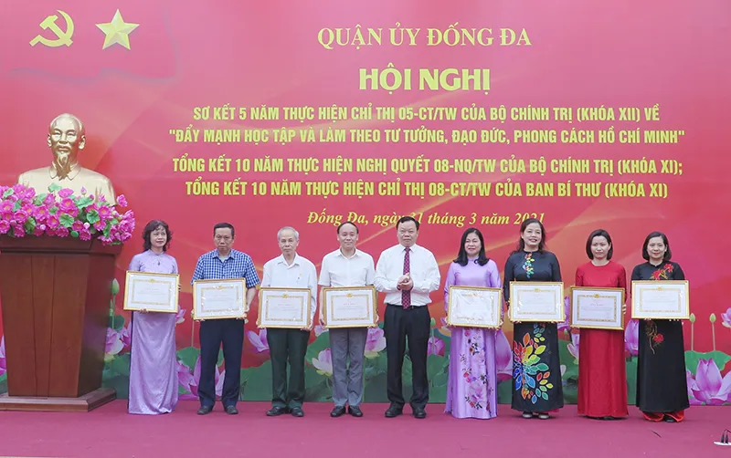 Nhân dịp này, Ban Thường vụ Quận ủy Đống Đa đã quyết định khen thưởng 18 tập thể và 18 cá nhân tiêu biểu trong học tập và làm theo tư tưởng, đạo đức, phong cách Hồ Chí Minh.