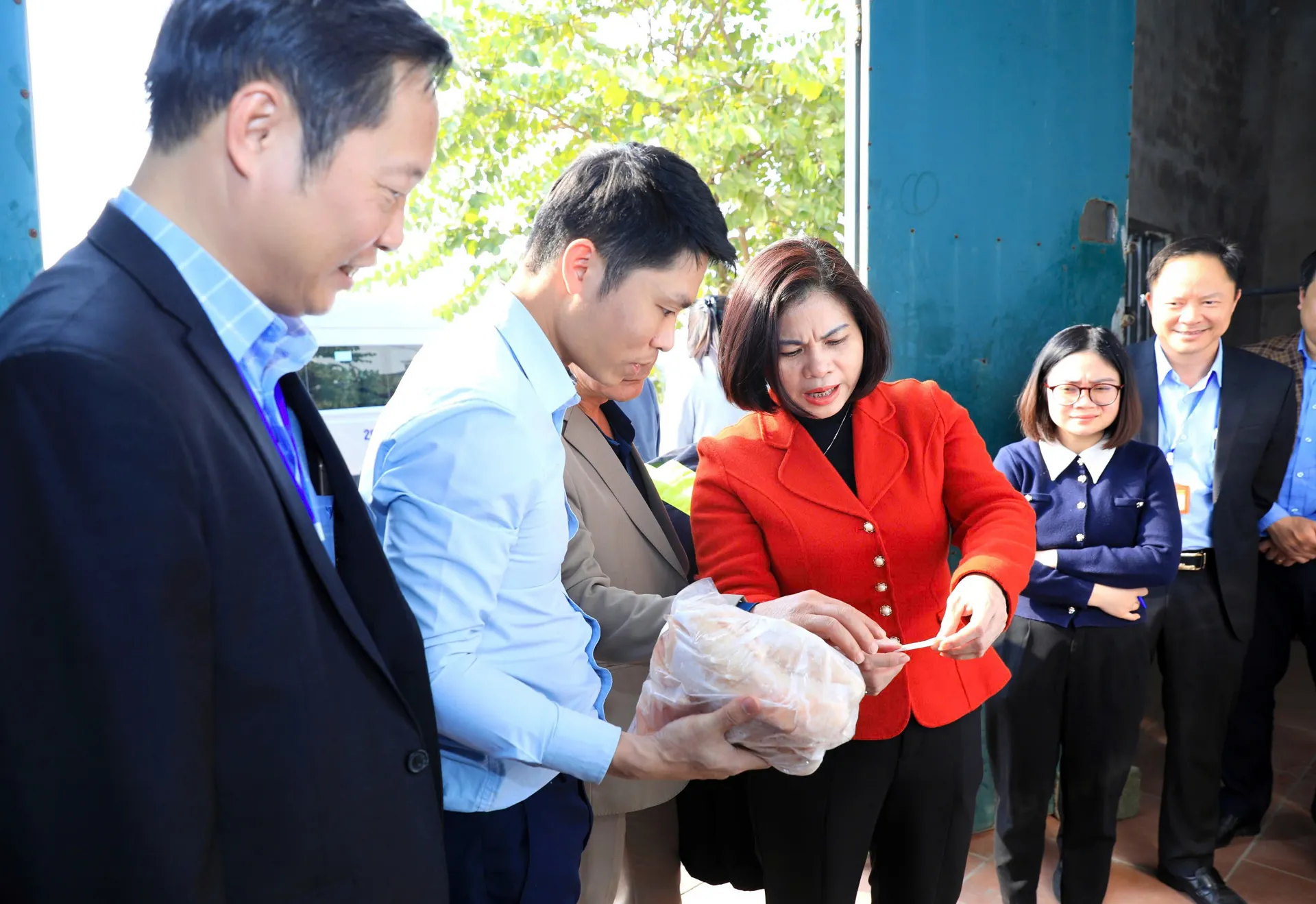 Đoàn khảo sát tại kho lạnh bảo quản thực phẩm từ gia súc, gia cầm trên địa bàn xã Chương Dương