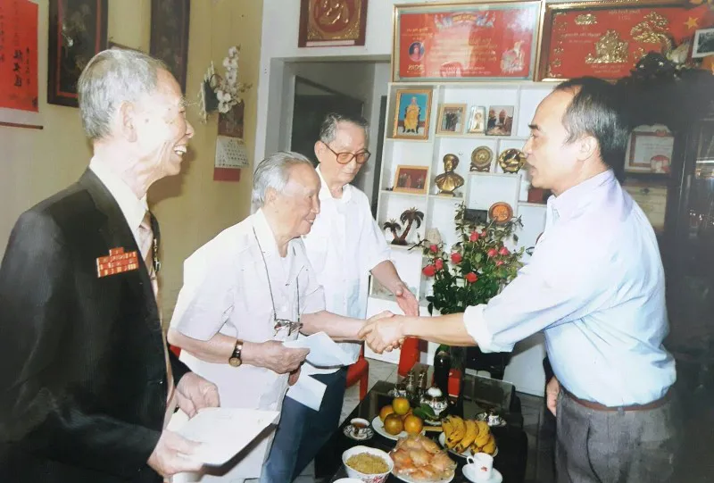 | Ông Vũ Quang Dung - Chủ tịch Hội Cựu chiến binh phường Phương Liệt trao quà cho các chiến sỹ tham gia chiến dịch Điện Biên Phủ |