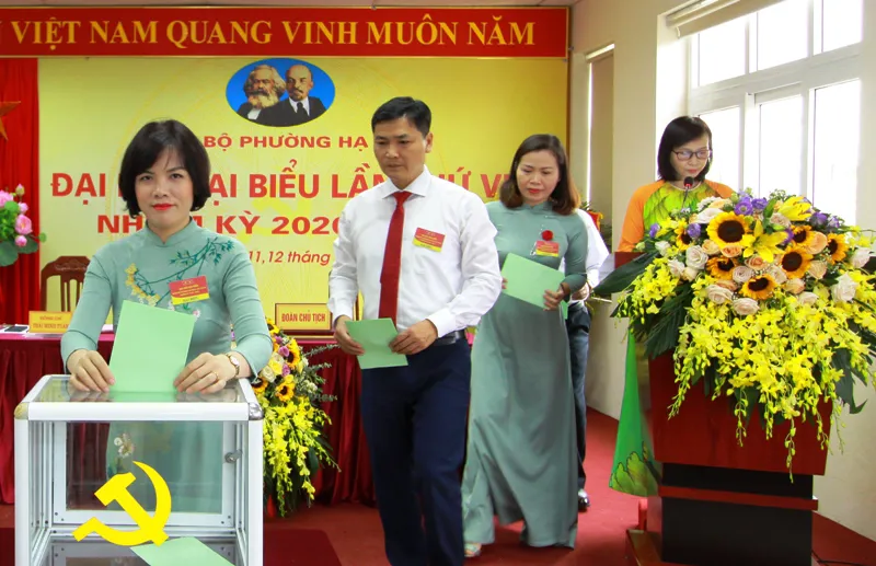 | Các đại biểu bỏ phiếu bầu Ban Chấp hành Đảng bộ phường Hạ Đình |