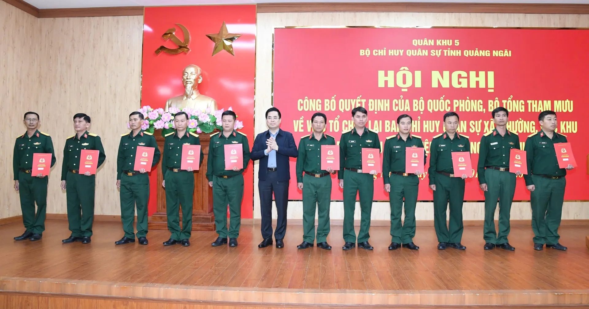 Ngày 14/1, Bộ CHQS tỉnh Quảng Ngãi tổ chức hội nghị công bố các quyết định của Bộ Quốc phòng, Bộ Tổng Tham mưu Quân đội nhân dân Việt Nam về việc tổ chức lại Ban CHQS xã, phường, đặc khu, đáp ứng yêu cầu nhiệm vụ trong tình hình mới.