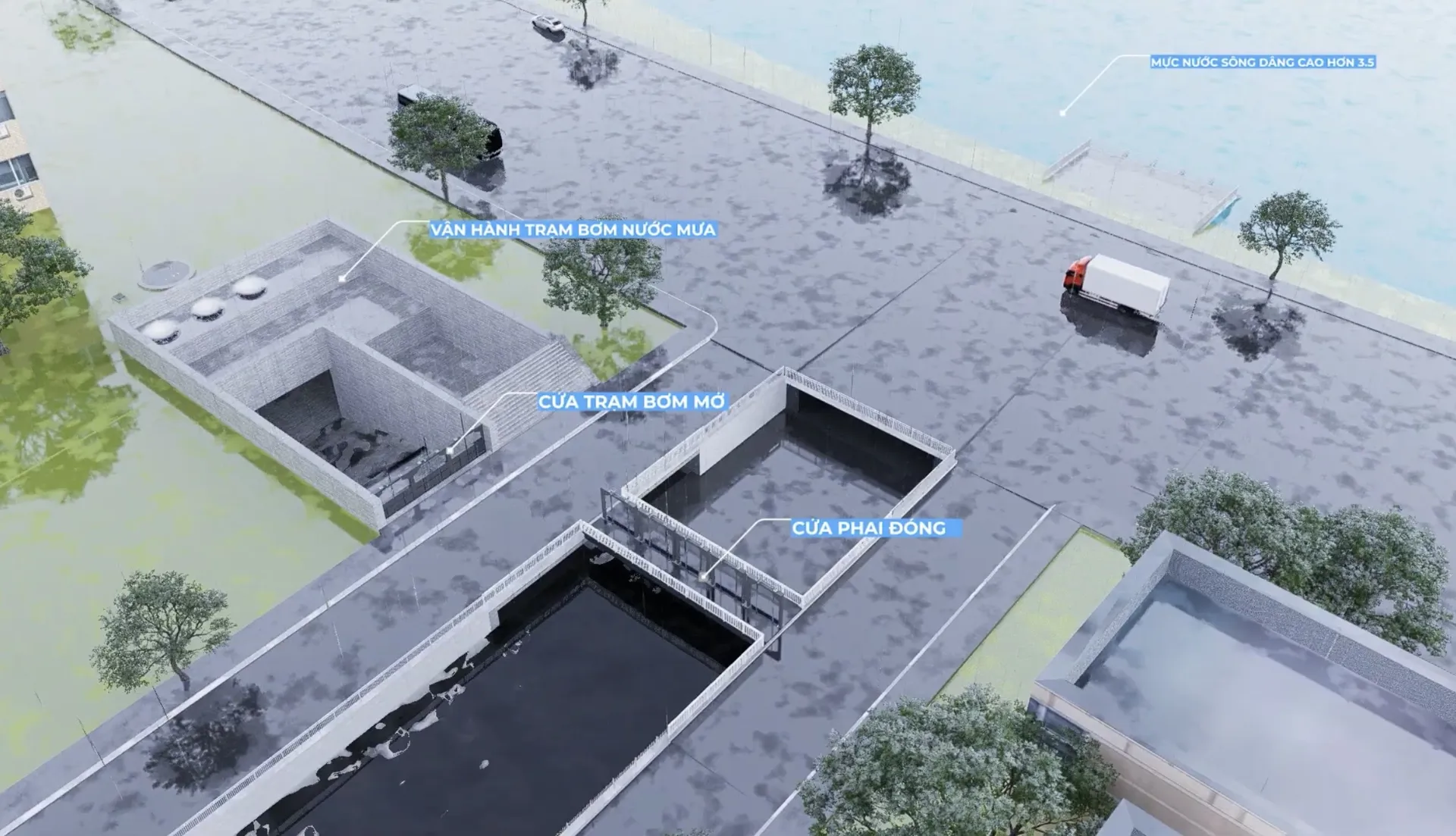 Ngoài ra, dự án còn xây dựng mới, nâng cấp các tuyến cống hộp dọc các trục đường chính; nạo vét kênh, mương; lắp đặt và sửa chữa hệ thống cửa phai tại các cửa xả nhằm ngăn nước sông chảy ngược vào khu dân cư.
