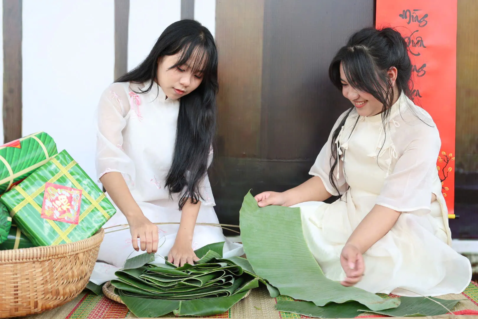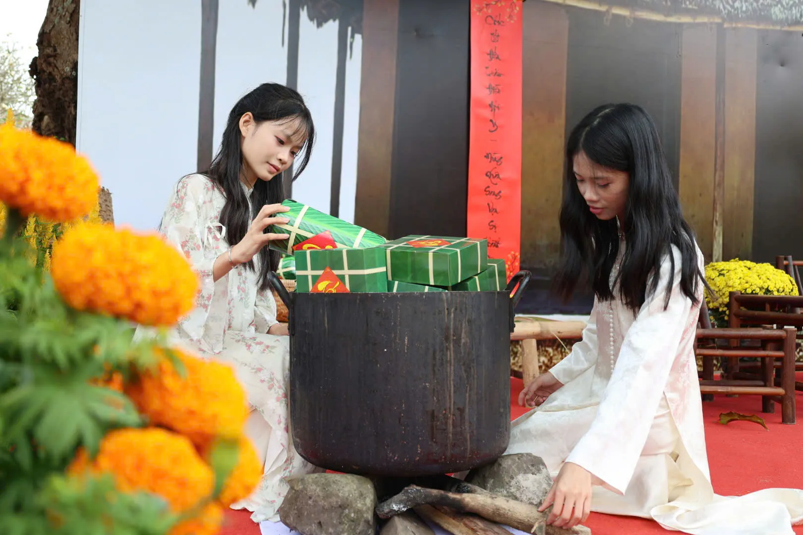Mùi lá chuối tươi, hương nếp mới lan tỏa từ khu trải nghiệm gói bánh khiến nhiều người nhớ về gian bếp củi đỏ lửa của những mùa xuân đã xa. Những bàn tay vụng về của người trẻ tập gói bánh dưới sự chỉ dẫn của người lớn, tiếng cười nói rộn ràng bên nồi bánh… tạo nên bức tranh xuân sống động, nơi truyền thống không nằm yên trong tủ kính mà đang tiếp tục được trao truyền.