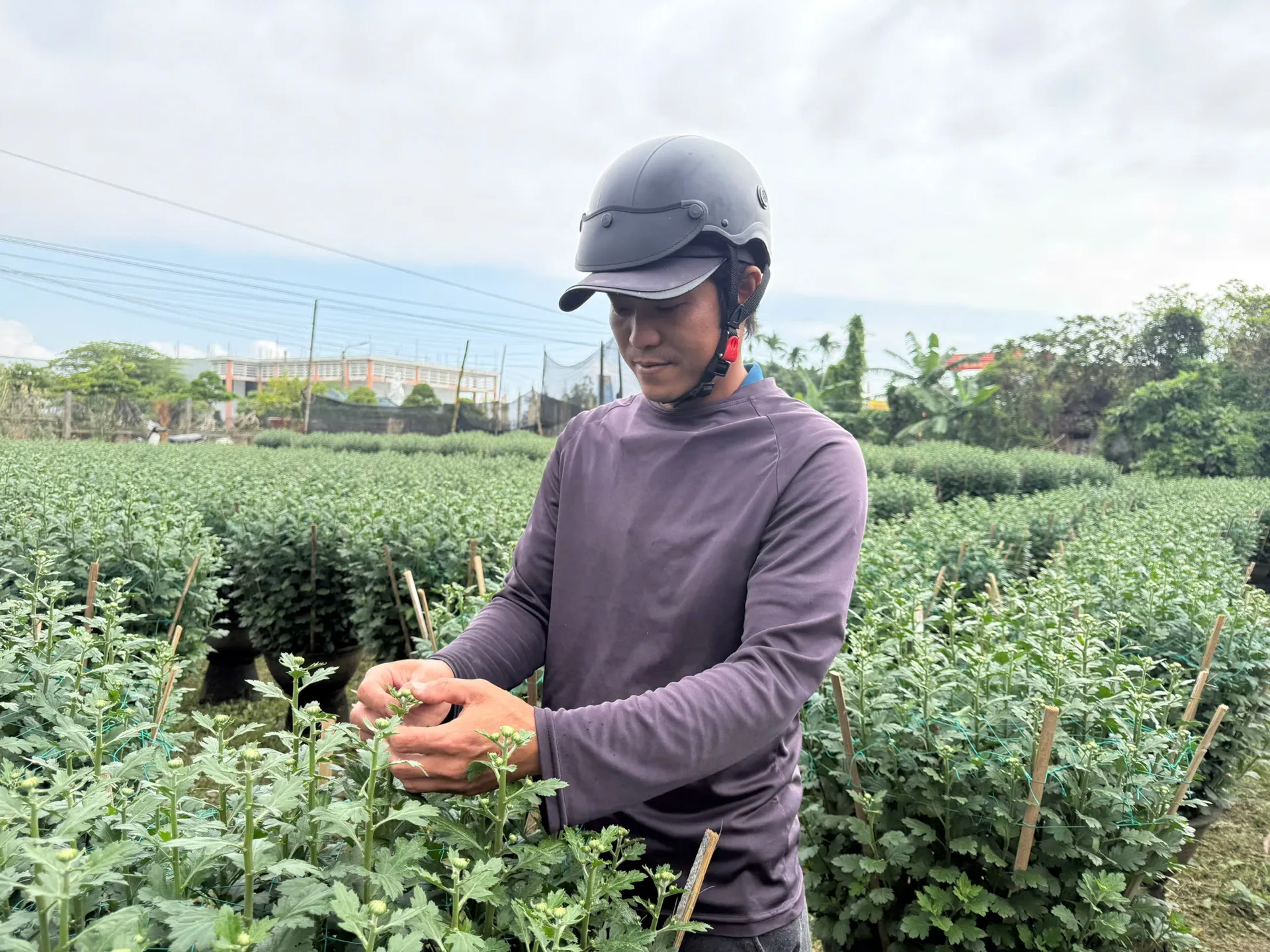 Thời điểm này, người dân Nghĩa Hiệp đang bước vào giai đoạn cuối của quá trình chăm sóc cúc Tết. Bên cạnh việc điều chỉnh lượng nước tưới, phân bón phù hợp, nhiều nhà vườn còn thuê thêm lao động thời vụ để tỉa bớt nụ, giúp cây dồn dinh dưỡng nuôi hoa chính, bảo đảm hoa to, đều và nở đúng thời điểm.