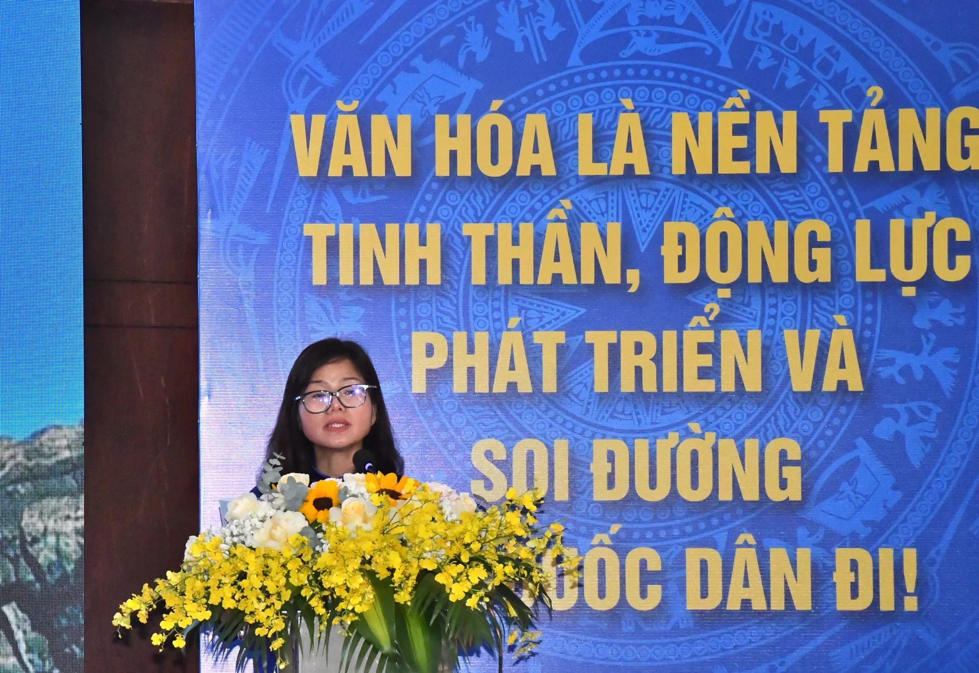 "Khuyến khích doanh nghiệp, cộng đồng tham gia phát triển văn hóa; để văn hóa thấm sâu vào sự vận hành hệ thống chính trị, vào mạch nguồn sự sống và trở thành sức mạnh nội sinh cho sự nghiệp xây dựng và phát triển quê hương, đất nước"- bà Trung nói.