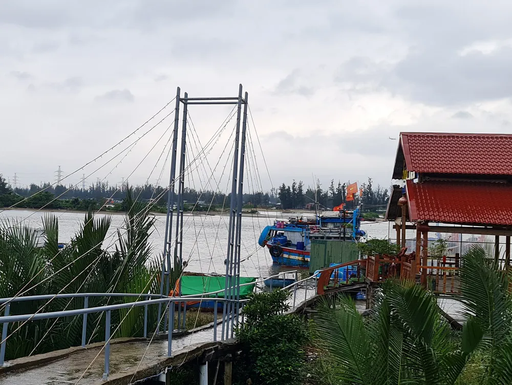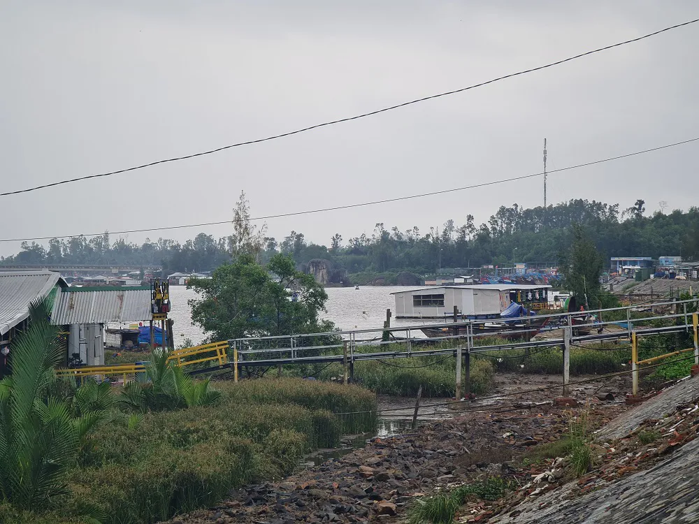 Đáng chú ý, một số nhà bè được làm ngay chân cầu Trà Bồng và khu vực tàu thuyền đang neo đậu. Một số nhà bè khác còn được xây dựng khá kiên cố, đổ cọc bê tông xuống lòng sông.