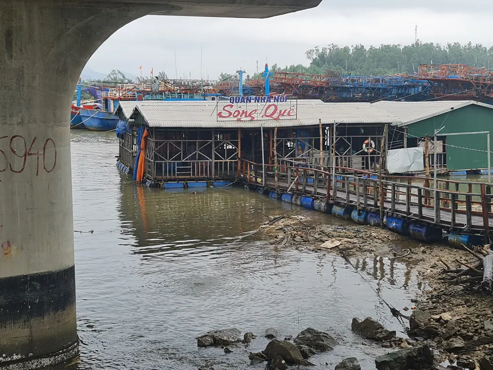 Việc xây dựng các nhà bè nổi đã làm cản trở tàu thuyền vào neo đậu tránh bão cũng như gây nên tình trạng lộn xộn tại khu vực này. Mới đây, qua kiểm tra, phòng CSGT Công an tỉnh Quảng Ngãi đã phát hiện ngoài 13 nhà bè nổi phục vụ kinh doanh ăn, uống còn có doanh nghiệp Hiếu Tuấn lấn chiếm lòng sông xây nhà, làm hồ nuôi tôm, cá.