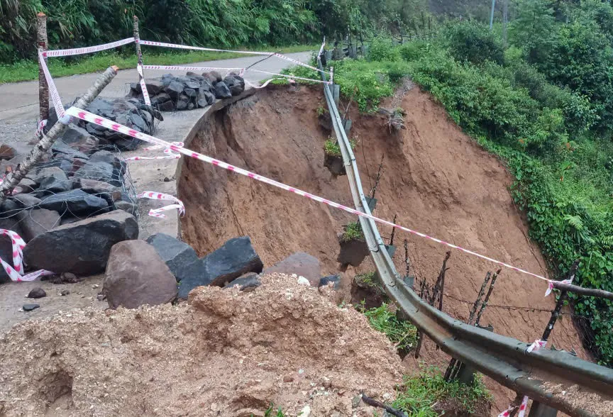 Đặc biệt tại km 2+300, taluy âm bị khoét sâu, hình thành hàm ếch lớn, khiến nền đường suy yếu và có nguy cơ đứt gãy toàn bộ mặt đường. Ngay sau khi nhận thông tin, chính quyền địa phương đã báo cáo cơ quan quản lý, phối hợp khắc phục, bước đầu đã cơ bản thông tuyến.