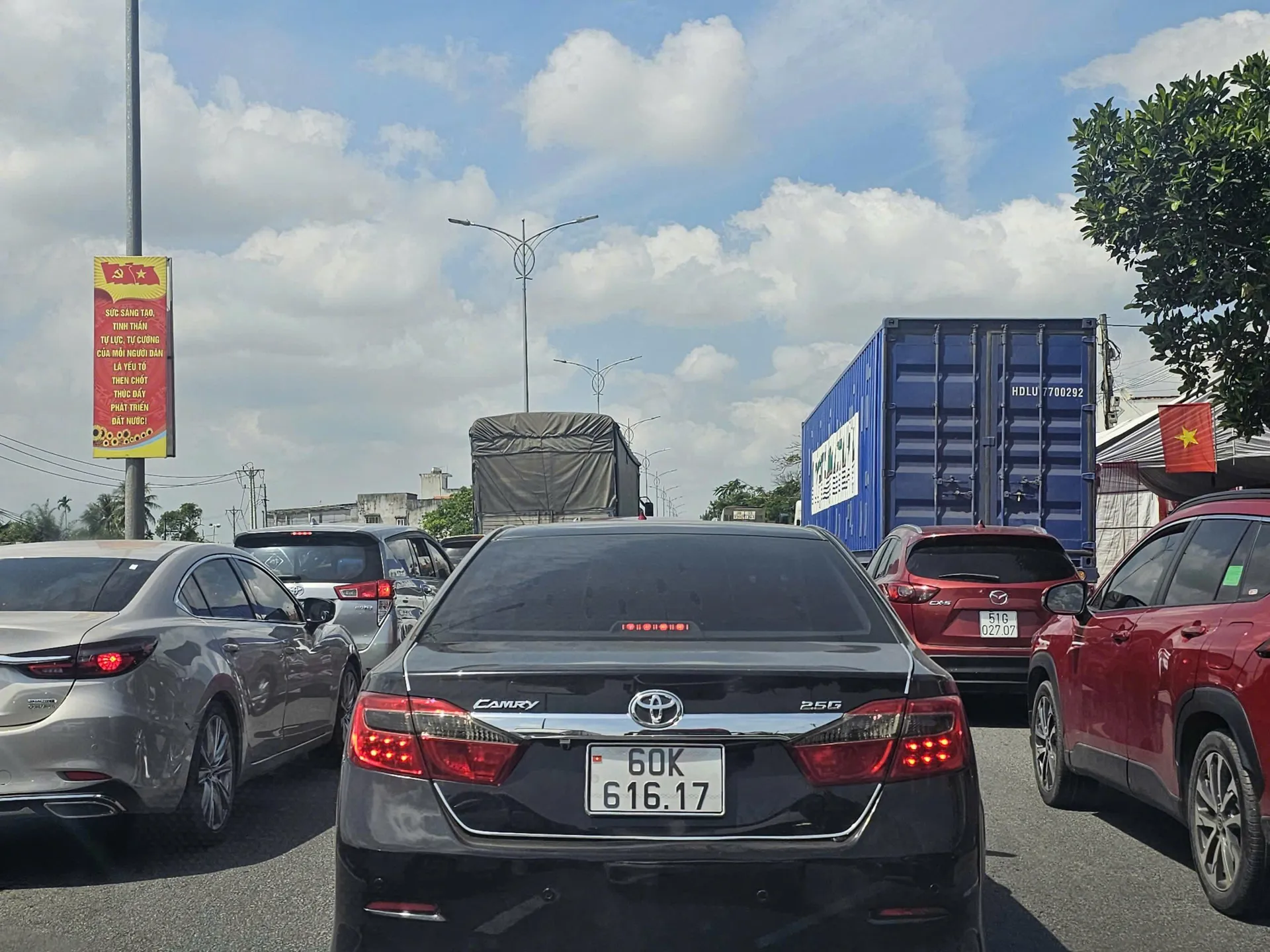 Giao thông trên Quốc lộ 1 hướng Nam – Bắc ken đặc phương tiện lưu thông.