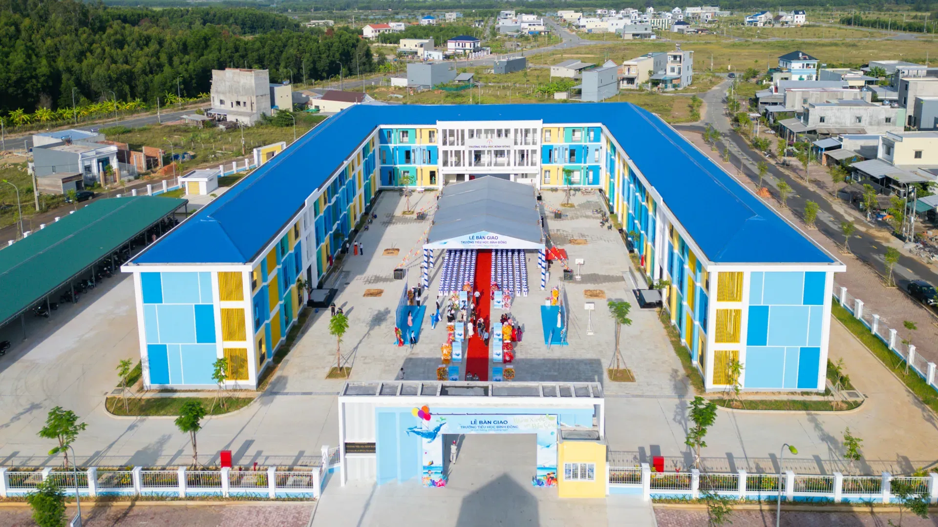 Tại xã Vạn Tường, Trường Tiểu học Bình Đông được xây mới khang trang trị giá 42 tỷ đồng cũng vừa hoàn thành và bàn giao vào cuối tháng 8/2025. Theo Hiệu trưởng Trường Tiểu học Bình Đông Hồ Ly, trường hiện có 3 điểm, trong đó điểm chính đặt tại thôn Tân Hy 2 – khu vực thuộc quy hoạch Khu kinh tế Dung Quất.