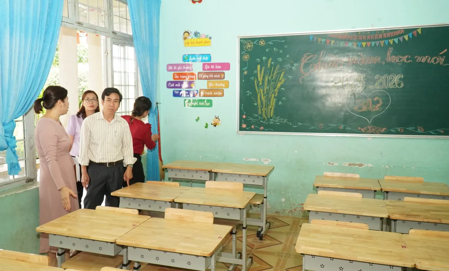 Phó Chủ tịch UBND xã Đăk Hà Trương Văn Thành kiểm tra công tác chuẩn bị cho năm học mới 2025 – 2026 tại Trường Tiểu học Lê Quý Đôn. Ảnh: Minh Thái