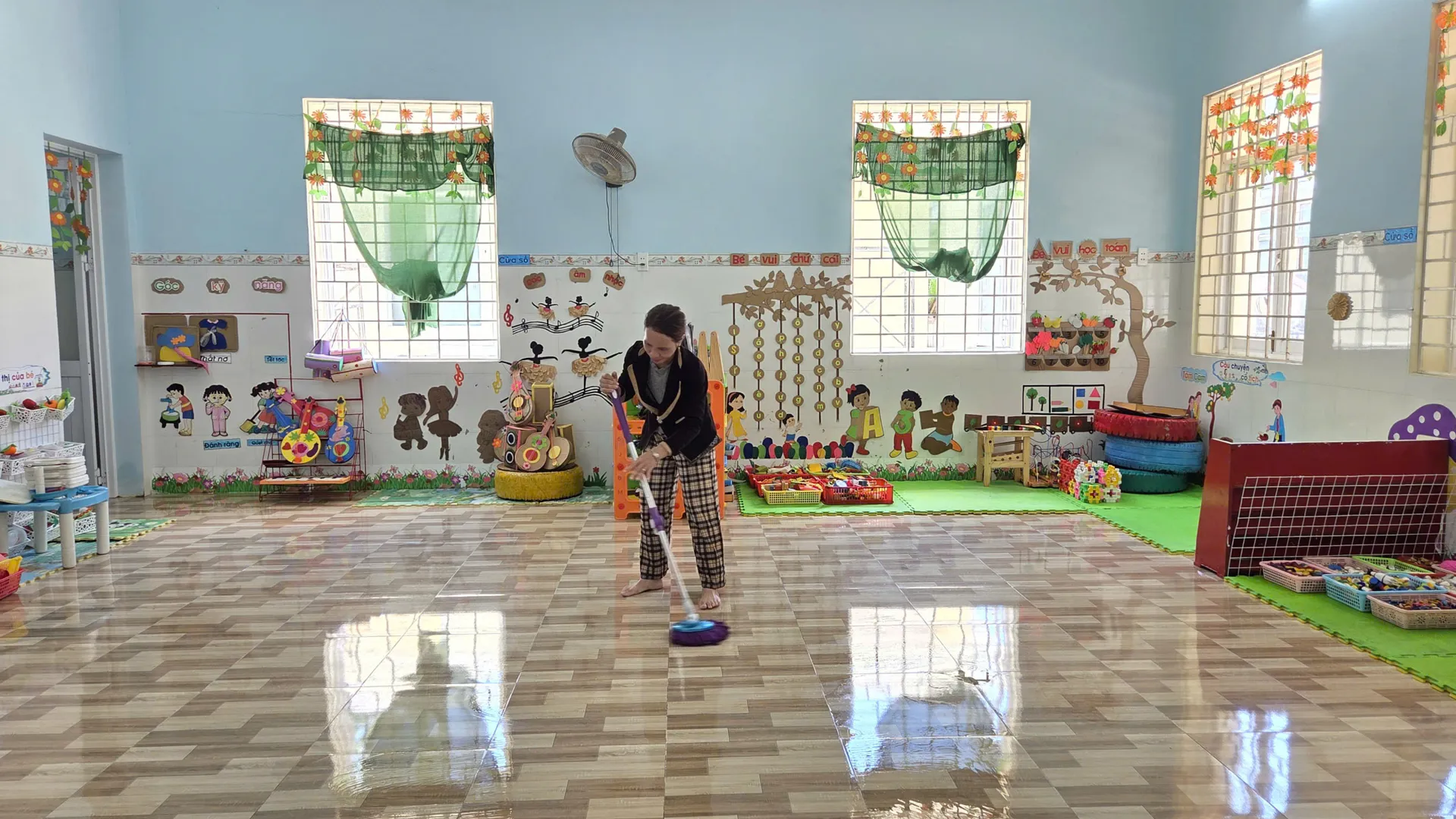 Khuôn viên trường lớp được dọn dẹp sạch sẽ, gọn gàng.