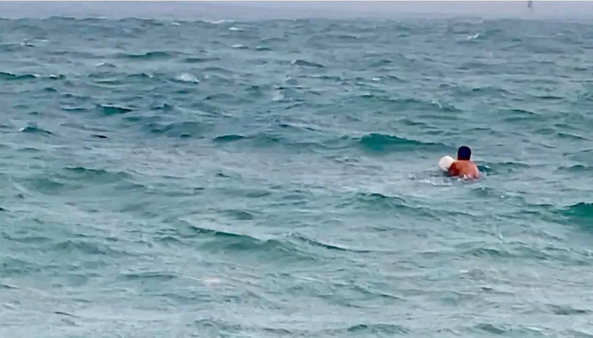 Ông Phan Duy Quang ôm phao bơi ra cứu người.