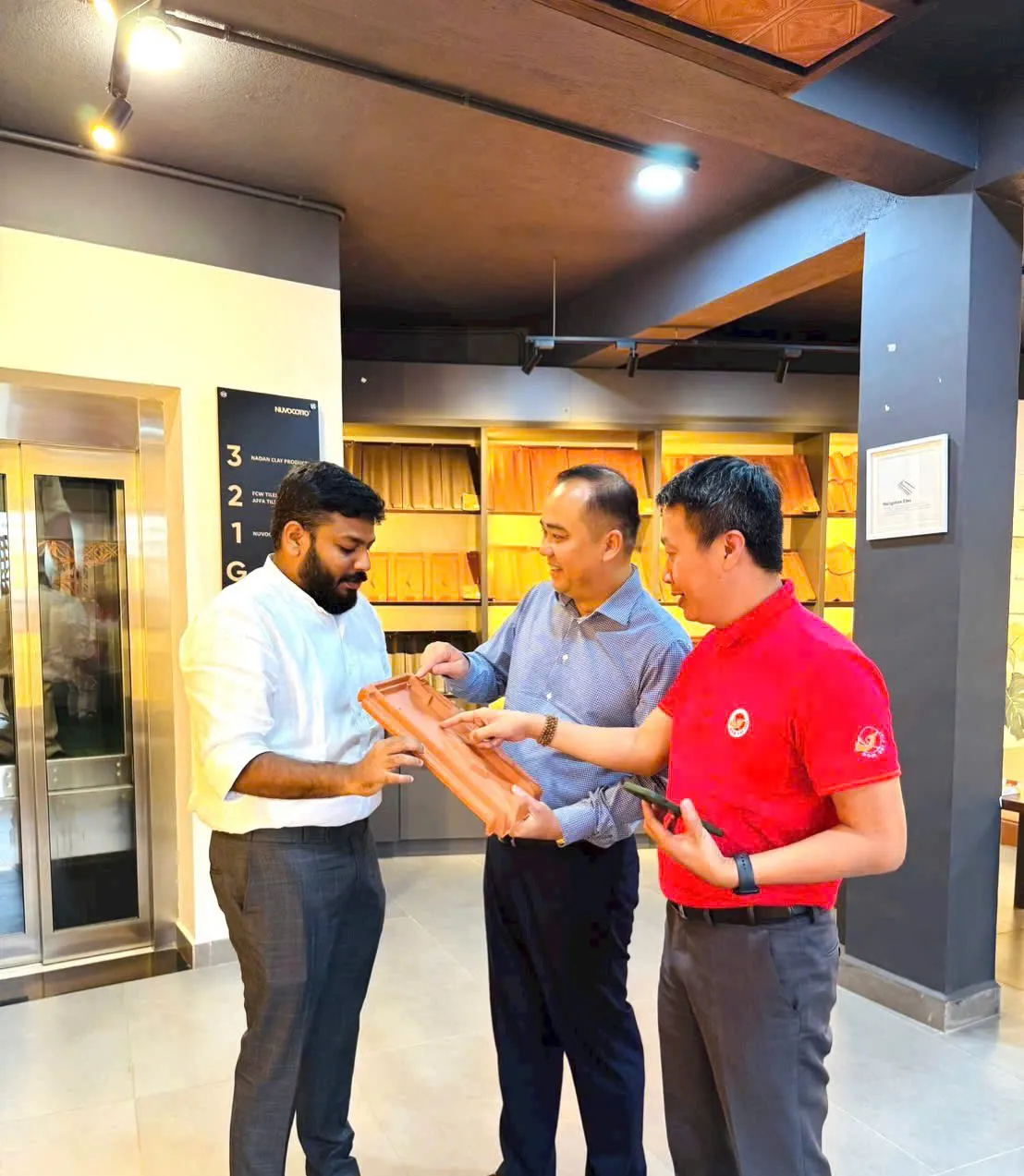 Một doanh nghiệp đến từ Sri Lanka thăm tổ hợp Công ty cổ phần Gốm Đất Việt Quảng Ninh. Ảnh: Vĩnh Quân