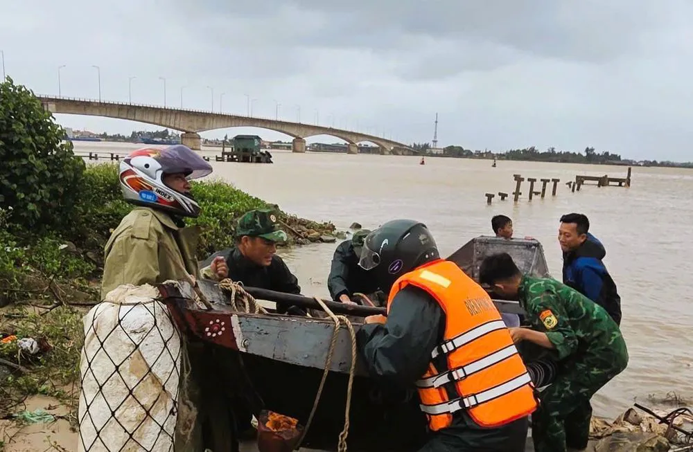 Đồn Biên phòng cửa khẩu cảng Cửa Việt đã cử 8 cán bộ, chiến sĩ phối hợp với người dân trên địa bàn tổ chức ứng cứu, trục vớt, đưa tàu vào bờ.
