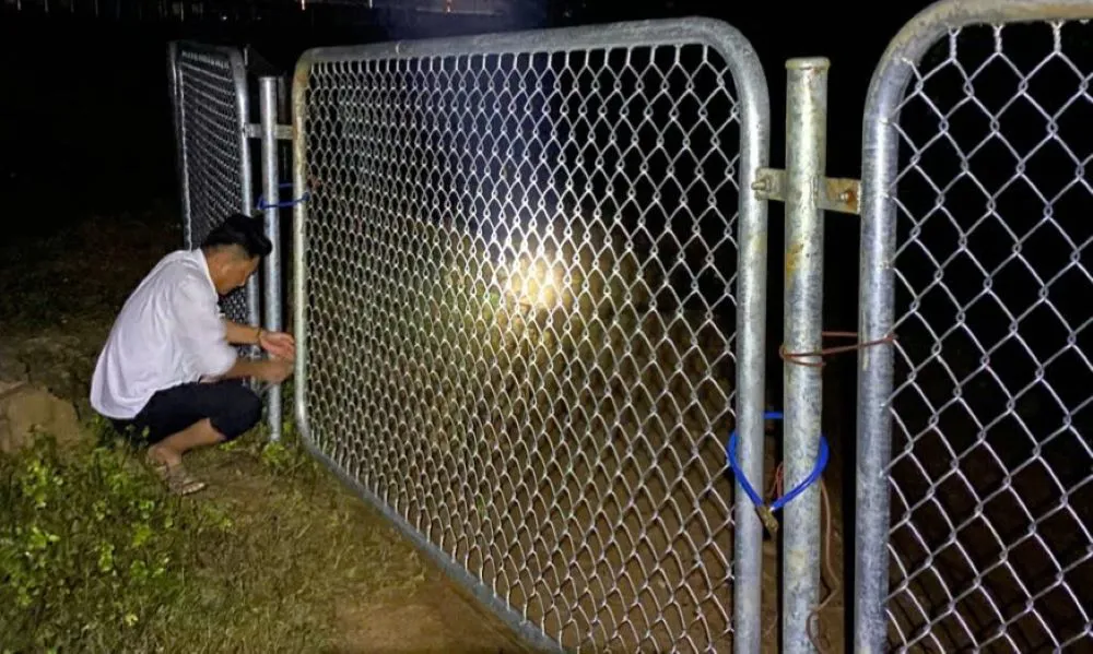 Ban Quản lý đường Hồ Chí Minh khắc phục lại hàng rào và dùng khóa để tránh tái diễn. Ảnh: Hàn Nguyên