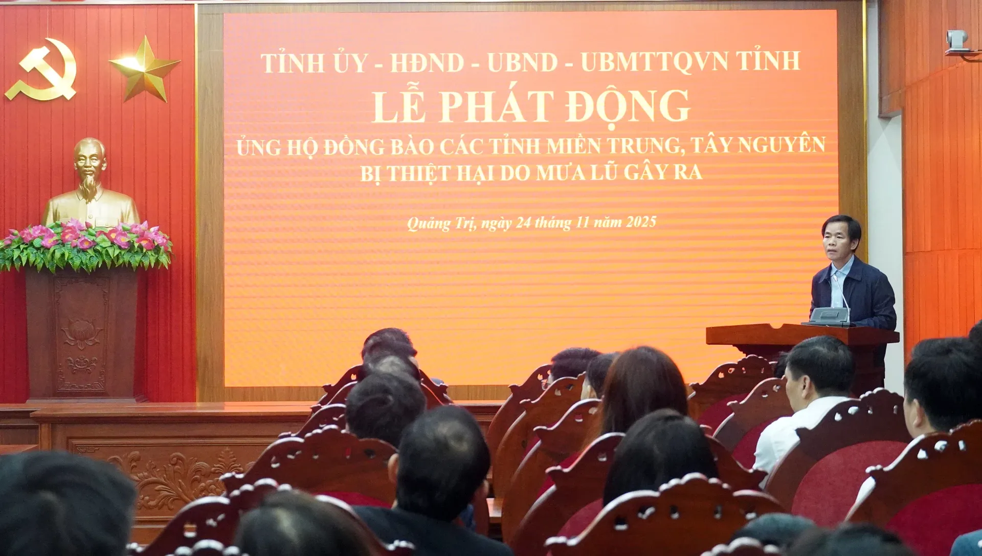 Kinhtedothi - Ngày 24/11, tỉnh Quảng Trị tổ chức lễ phát động đợt vận động Nghĩa tình Quảng Trị hướng đến đồng bào miền Trung, Tây Nguyên nhằm vận động nguồn lực hỗ trợ các hộ dân bị ảnh hưởng sớm khắc phục hậu quả mưa lũ lịch sử.