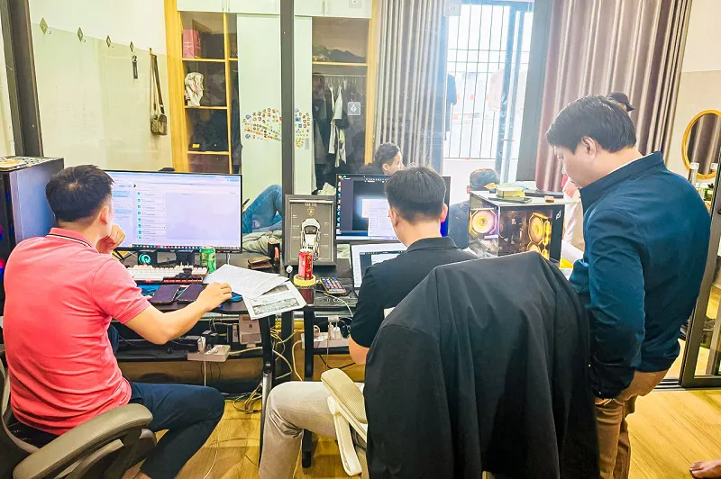 Lực lượng chức năng tiến hành làm việc và kiểm tra dữ liệu điện tử.