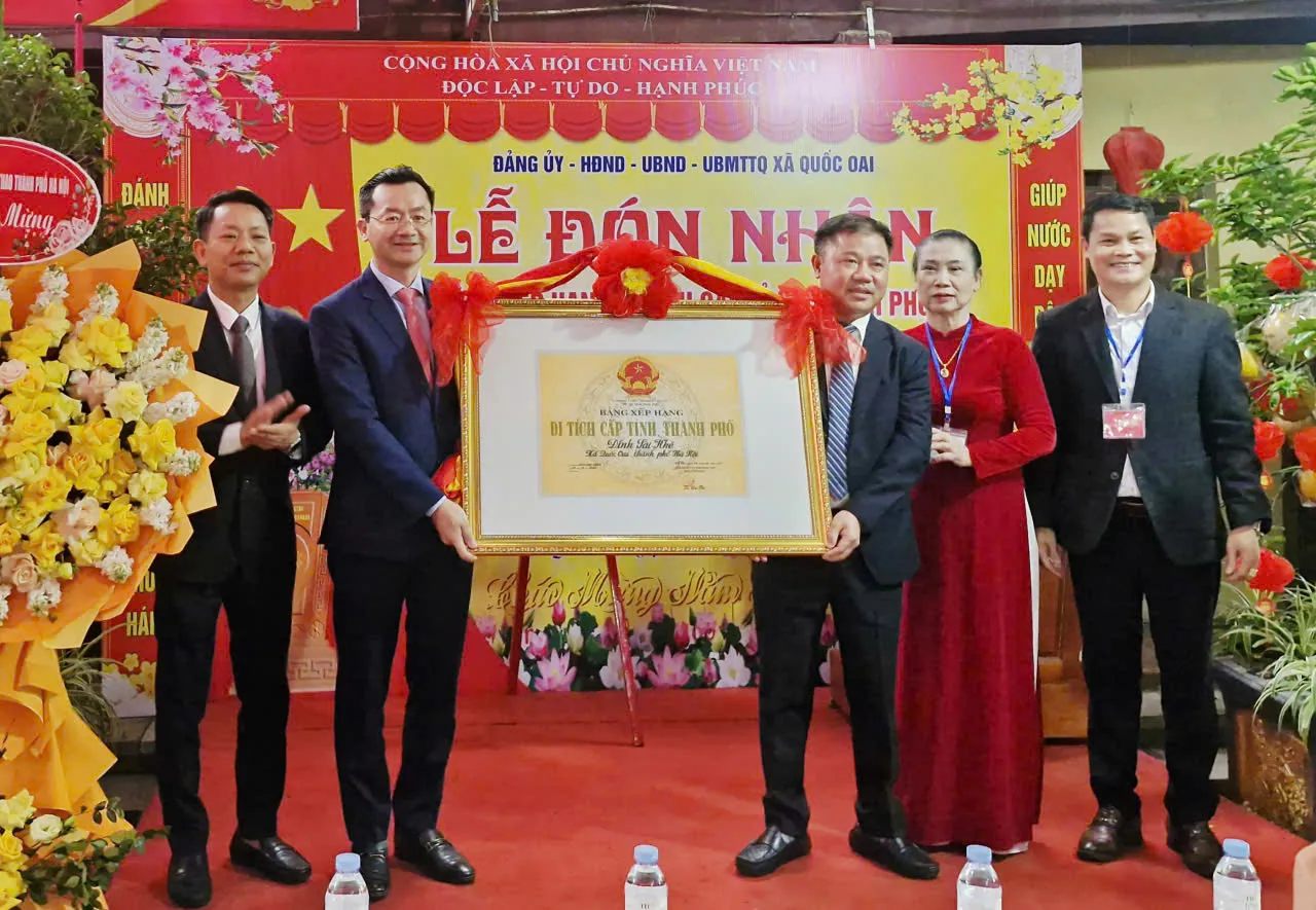 Kinhtedothi - Sáng 24/2 (mùng 8 tháng Giêng năm Bính Ngọ), tại Quán Tam Xã, thôn Sài Khê, xã Quốc Oai tổ chức Lễ đón nhận Bằng xếp hạng Di tích cấp tỉnh, thành phố đối với Đình Sài Khê. Đông đảo cán bộ, đảng viên và nhân dân địa phương tham dự, chung vui trong không khí trang trọng, phấn khởi đầu xuân.