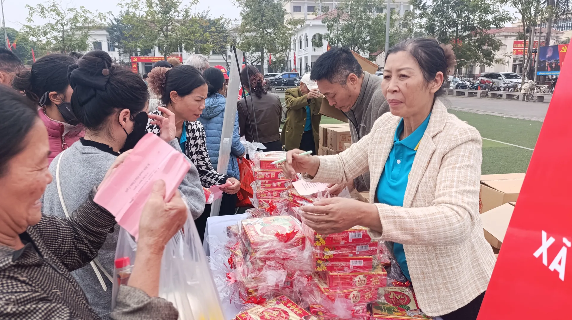 Song song với các hoạt động văn hóa, các gian hàng “0 đồng” thu hút đông đảo người dân tham gia. Tại đây, các hộ gia đình khó khăn được lựa chọn miễn phí những nhu yếu phẩm thiết yếu cho ngày Tết như bánh, mứt, kẹo, dầu ăn, nước mắm, mỳ chính, đường, muối… Mọi hoạt động diễn ra trong không khí vui vẻ, trân trọng, thể hiện sự quan tâm tinh tế, nhân văn của Ban Tổ chức, giúp người dân đón nhận sự hỗ trợ với tâm thế ấm lòng, không mặc cảm.
