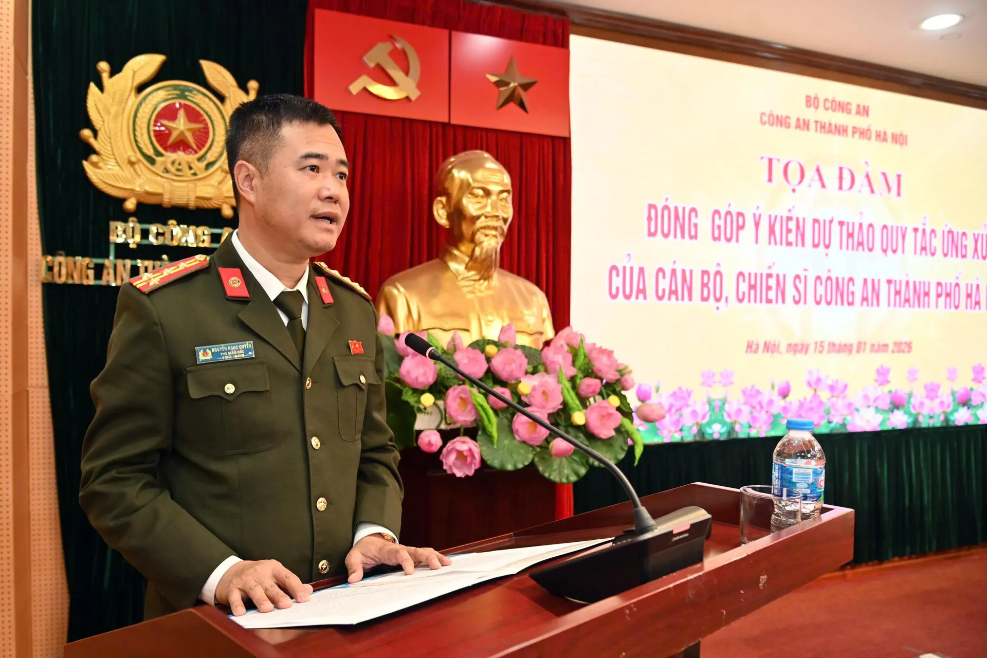 Đại tá Nguyễn Ngọc Quyền, Phó Giám đốc CATP Hà Nội phát biểu tại tọa đàm.