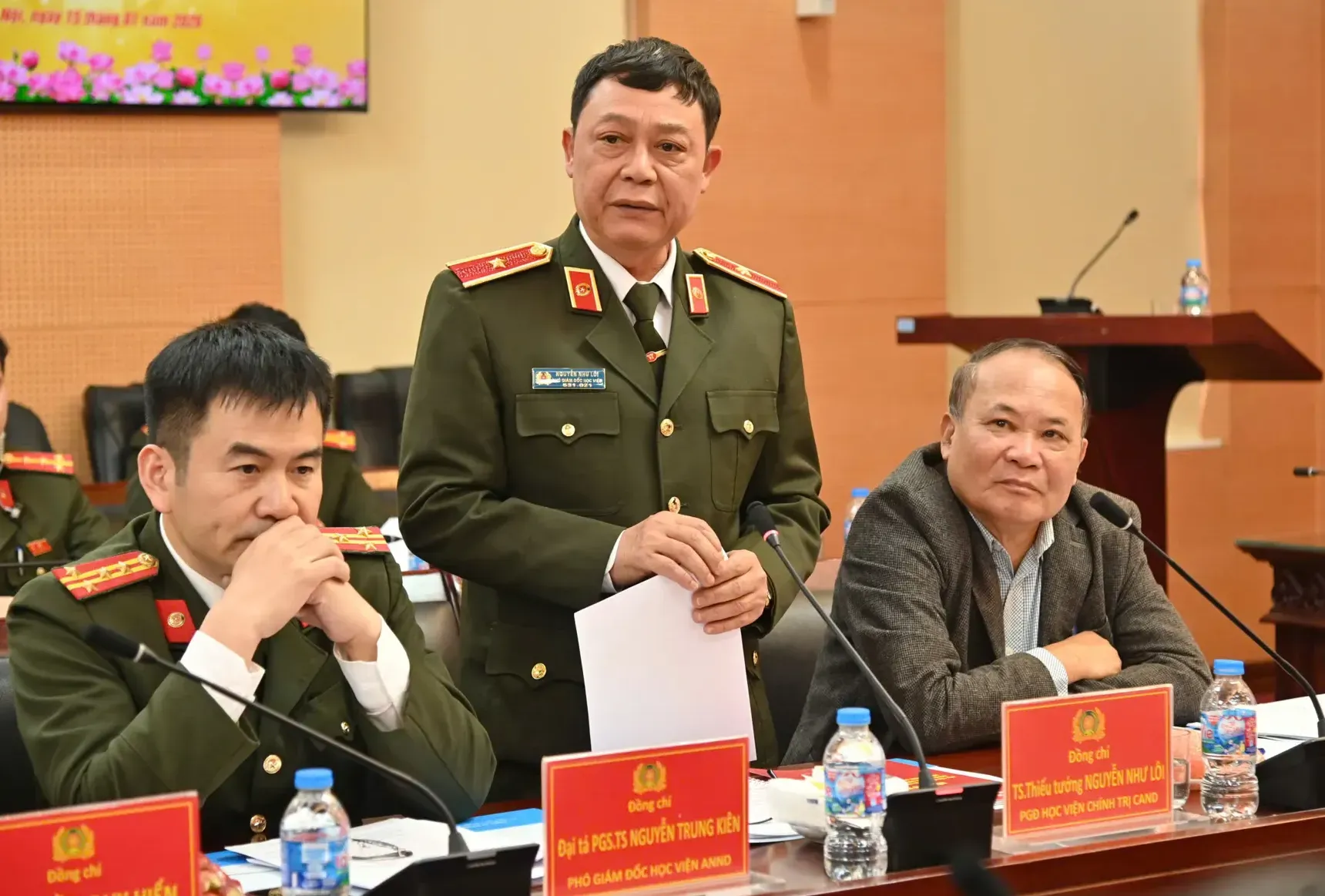 Thiếu tướng, Tiến sĩ Nguyễn Như Lôi, Phó Giám đốc Học viện Chính trị CAND tham luận tại tọa đàm.