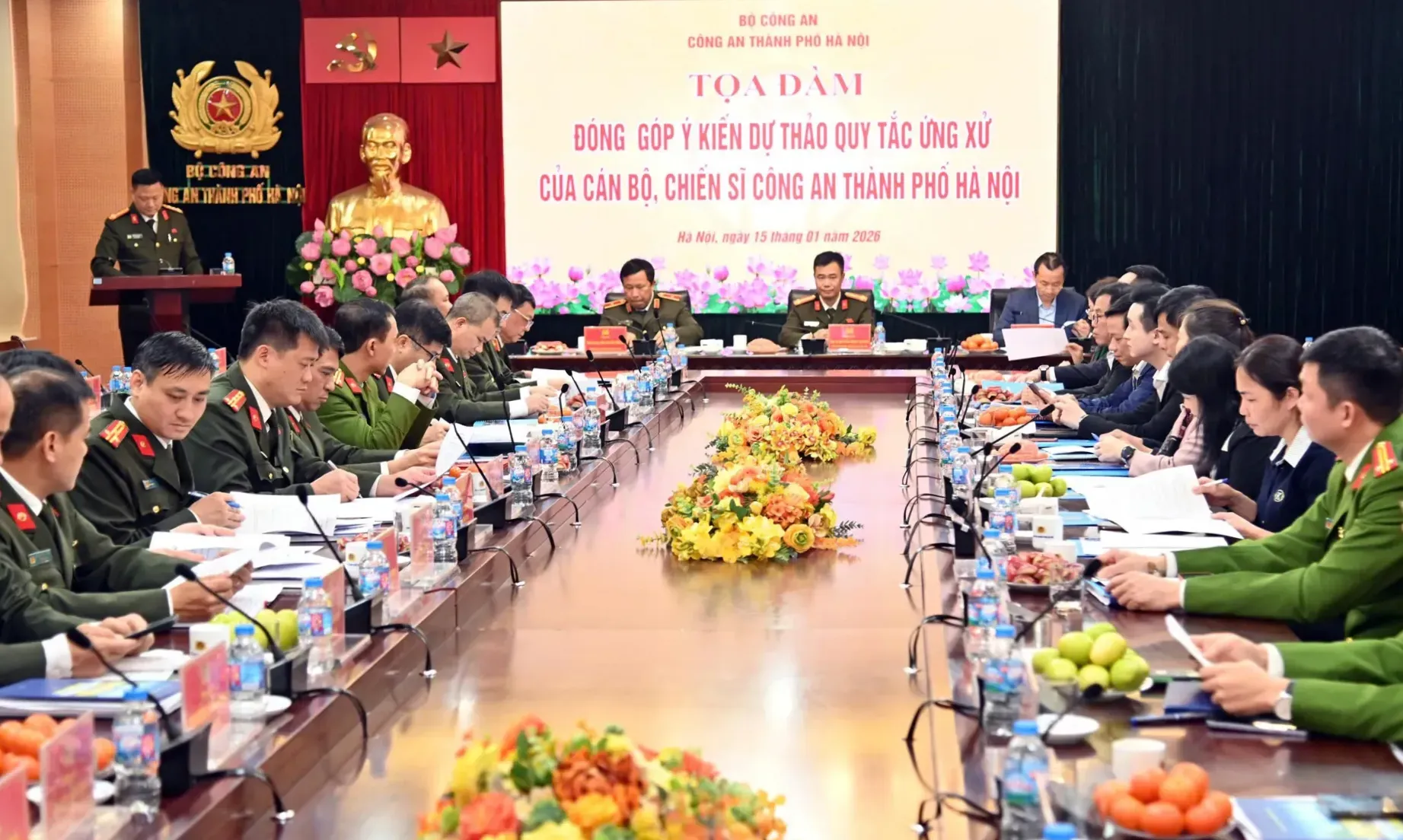 Thực hiện Thông tư số 12/2023/TT-BCA của Bộ Công an quy định về Quy tắc ứng xử của cán bộ, chiến sĩ Công an nhân dân (CAND); đồng thời cụ thể hóa các Quy tắc ứng xử của TP Hà Nội, chiều 15/1/2026, Công an TP (CATP) Hà Nội tổ chức Tọa đàm “Đóng góp ý kiến Dự thảo Quy tắc ứng xử của cán bộ, chiến sỹ Công an TP Hà Nội”. Đây là bước quan trọng nhằm tiếp tục hoàn thiện Dự thảo trước khi trình cấp có thẩm quyền ban hành.