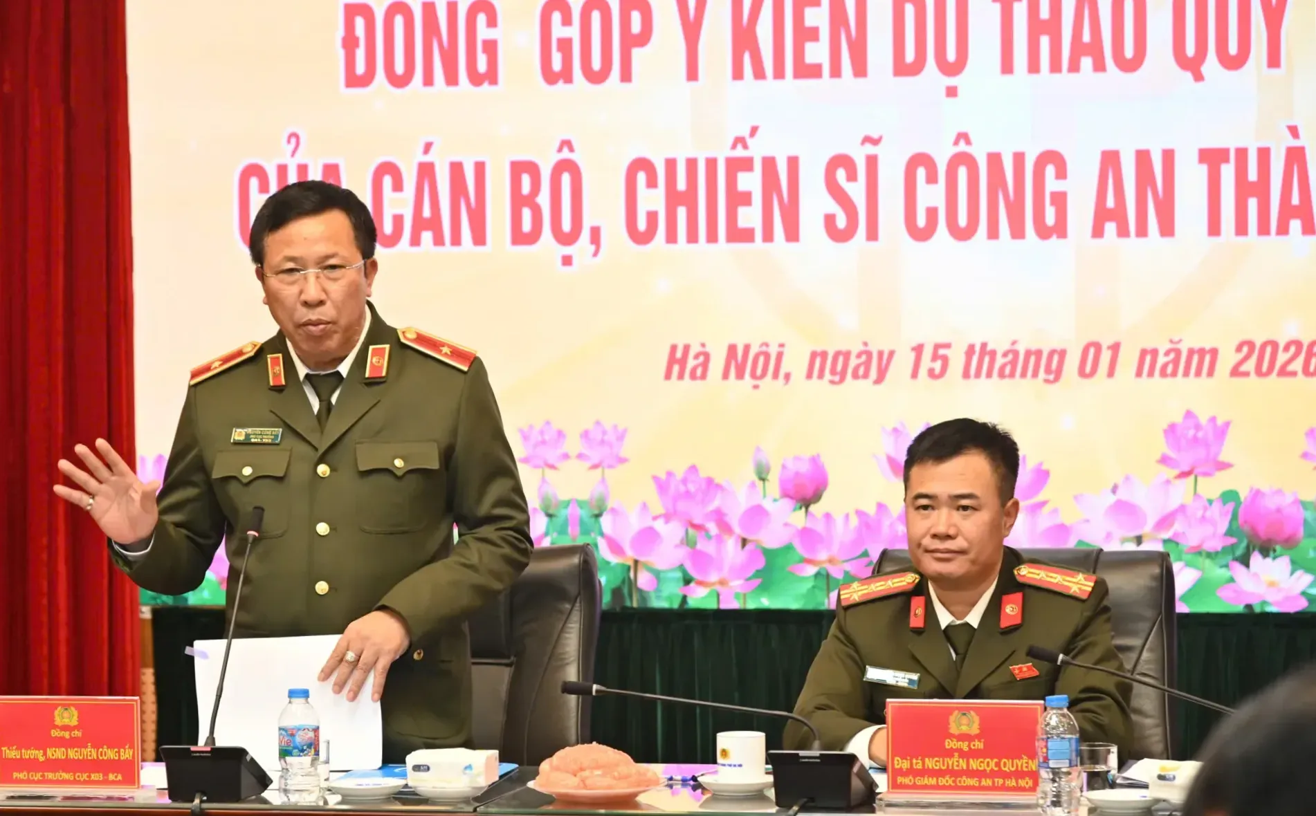 Góp ý vào nội dung Dự thảo, Thiếu tướng, Tiến sĩ Nguyễn Như Lôi, Phó Giám đốc Học viện Chính trị CAND cho biết, qua nghiên cứu Dự thảo lần thứ hai gồm 6 chương, 16 điều, có thể thấy các quy định đã khá cụ thể, rõ ràng, thể hiện sự phát triển về nhận thức trong xây dựng hình ảnh người cán bộ, chiến sỹ Công an Hà Nội. Ông đề xuất cần nhấn mạnh sâu sắc hơn tư tưởng “Vì nước quên thân, vì dân phục vụ”, coi đây là giá trị xuyên suốt, gắn chặt với việc thực hiện “Sáu điều Bác Hồ dạy Công an Nhân dân” – kim chỉ nam trong xây dựng văn hóa ứng xử của toàn lực lượng.