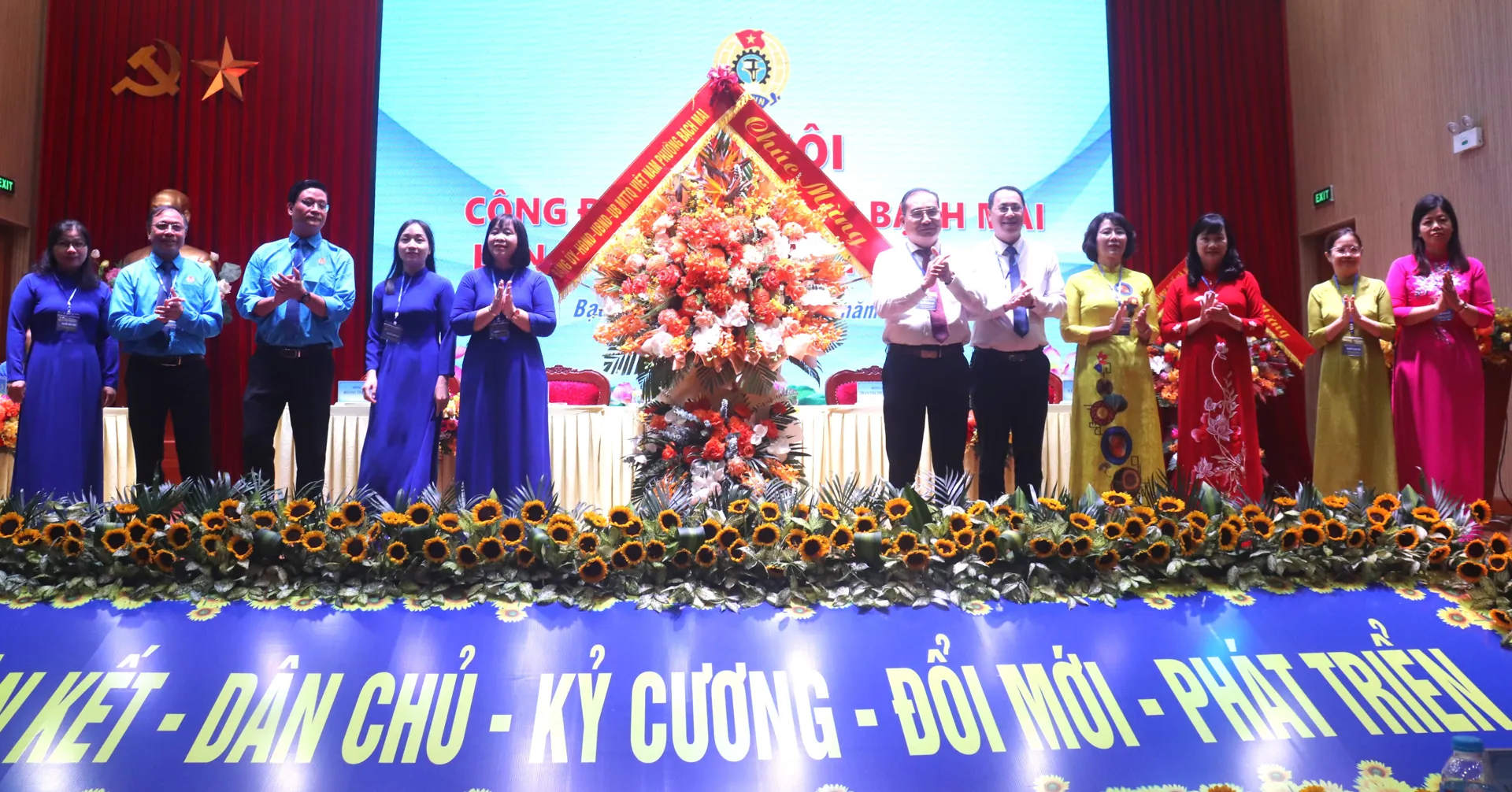 Lãnh đạo LĐLĐ TP Hà Nội và lãnh đạo phường Bạch Mai tặng hoa chúc mừng Đại hội