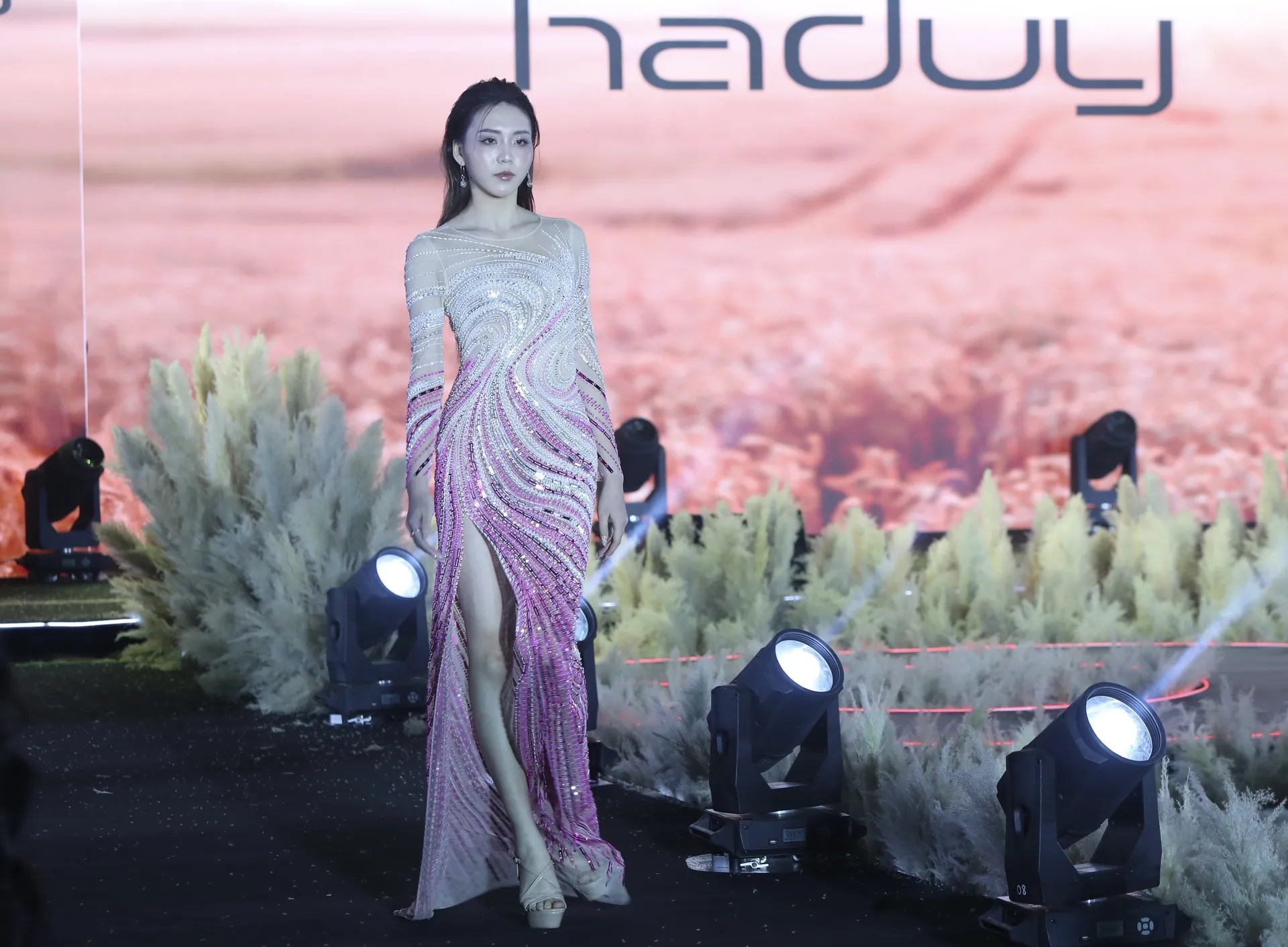 Điểm nhấn trong khuôn khổ lễ ra mắt, chính là Private show giới thiệu bộ sưu tập Xuân Hè 2026 của nhà thiết kế Hà Duy với chủ đề “Chuyển động – Tái sinh”, tôn vinh vẻ đẹp của phụ nữ hiện đại: mềm mại, nữ tính, tinh tế nhưng đầy bản lĩnh và năng lượng Á Đông. Tất cả được nhà thiết Hà Duy phác họa và truyền tải khéo léo trong từng bộ trang phục, từng bước đi uyển chuyển của những nàng thơ.
