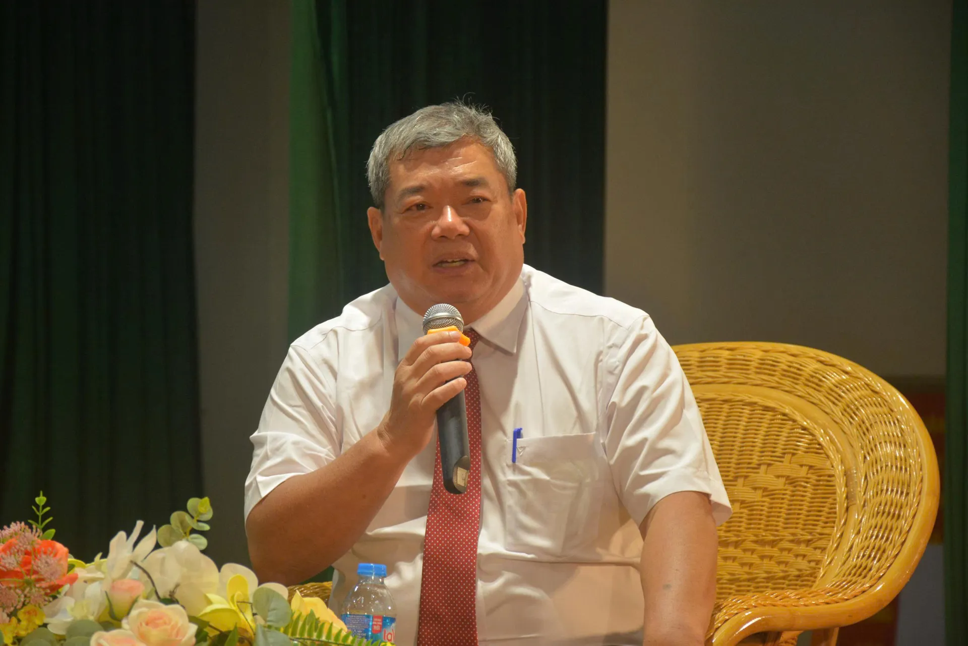 Tác giả Nguyễn Quang Chánh (áo trắng) chia sẻ tại lễ ra mắt cuốn sách.