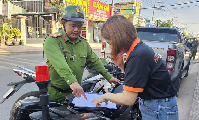 Đội CSGT Bình Triệu cùng Công an phường Thuận Giao xử lý một trường hợp vi phạm.